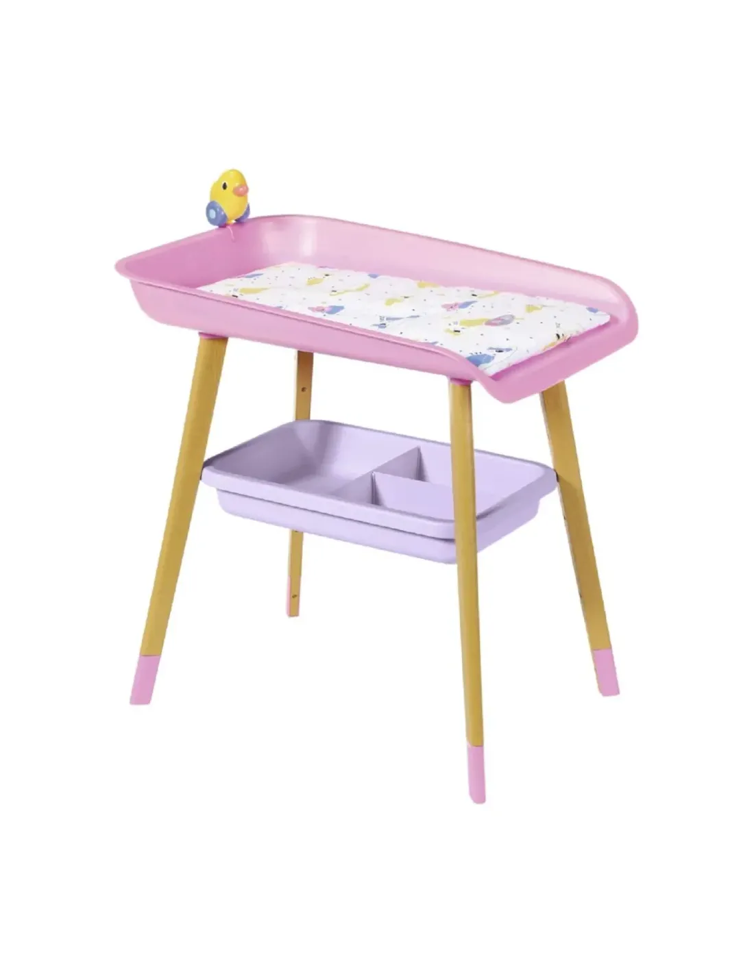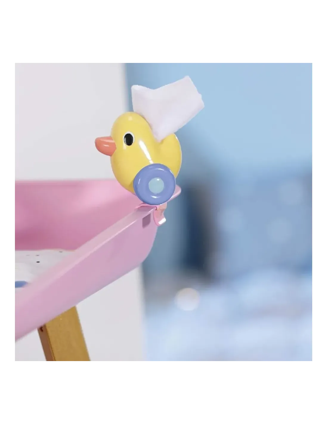 Morbido e dolce bambolotto alto 45 cm per teneri abbracci. Prenditi cura di lui dandogli la pappa o facendolo bere dal biberon, cantagli la ninnananna mentre si addormenta sul suo cuscino, gioca con lui e la sua paperella. Indossa una graziosa tutina con sopra ricamata una giraffa e un cappellino.