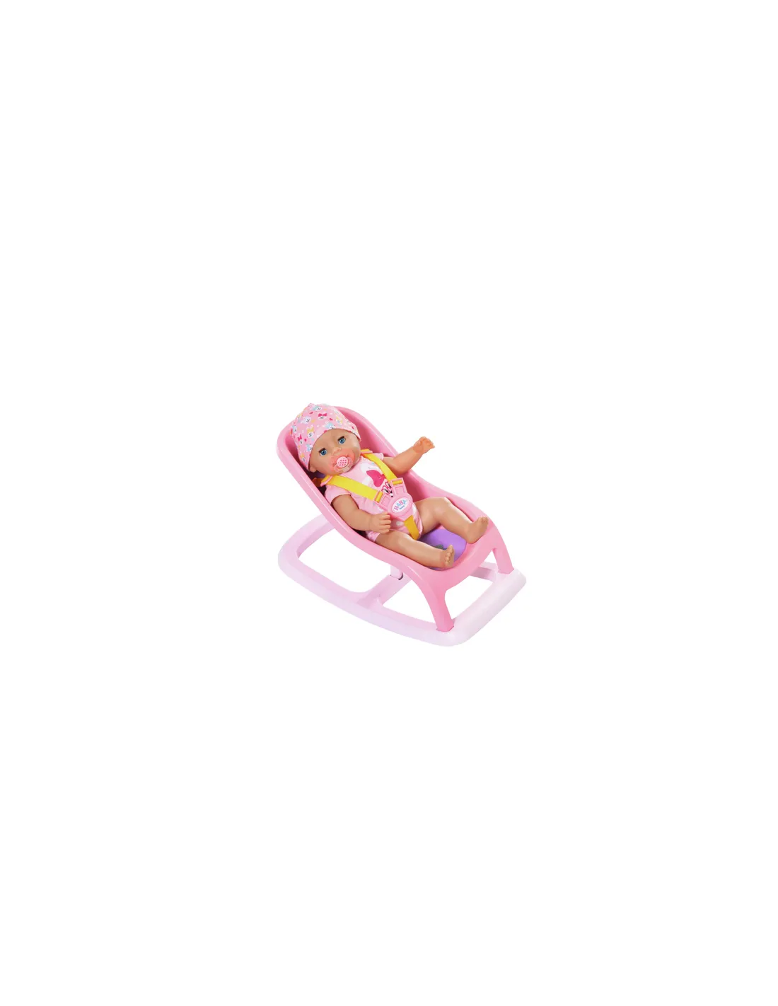 Bambola Reborn 38 cm dai tratti realistici con corpo in vinile, indossa un tenero completo con fiori, abbinato ad una fascia in testa; la confezione include una coperta doppiata rosa con lurex ed il ciuccio con catenella. La bambola è particolarmente realistica, con dettagli ricercati come la delicata venatura sulla pelle e l'effetto bagnato sulla boccuccia.