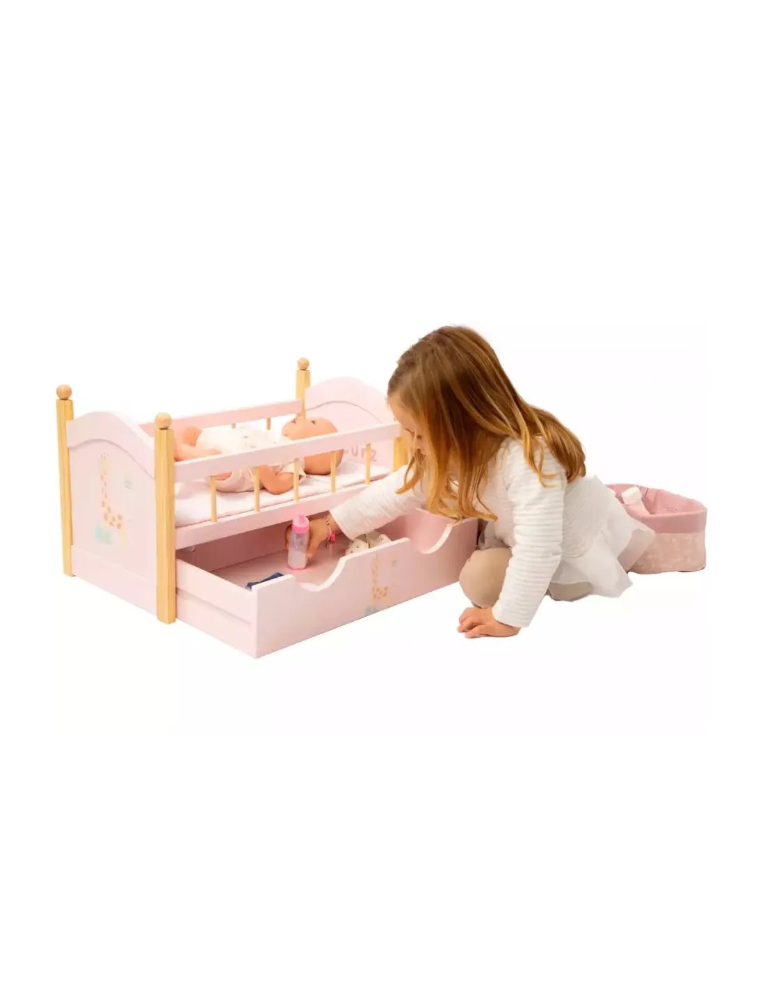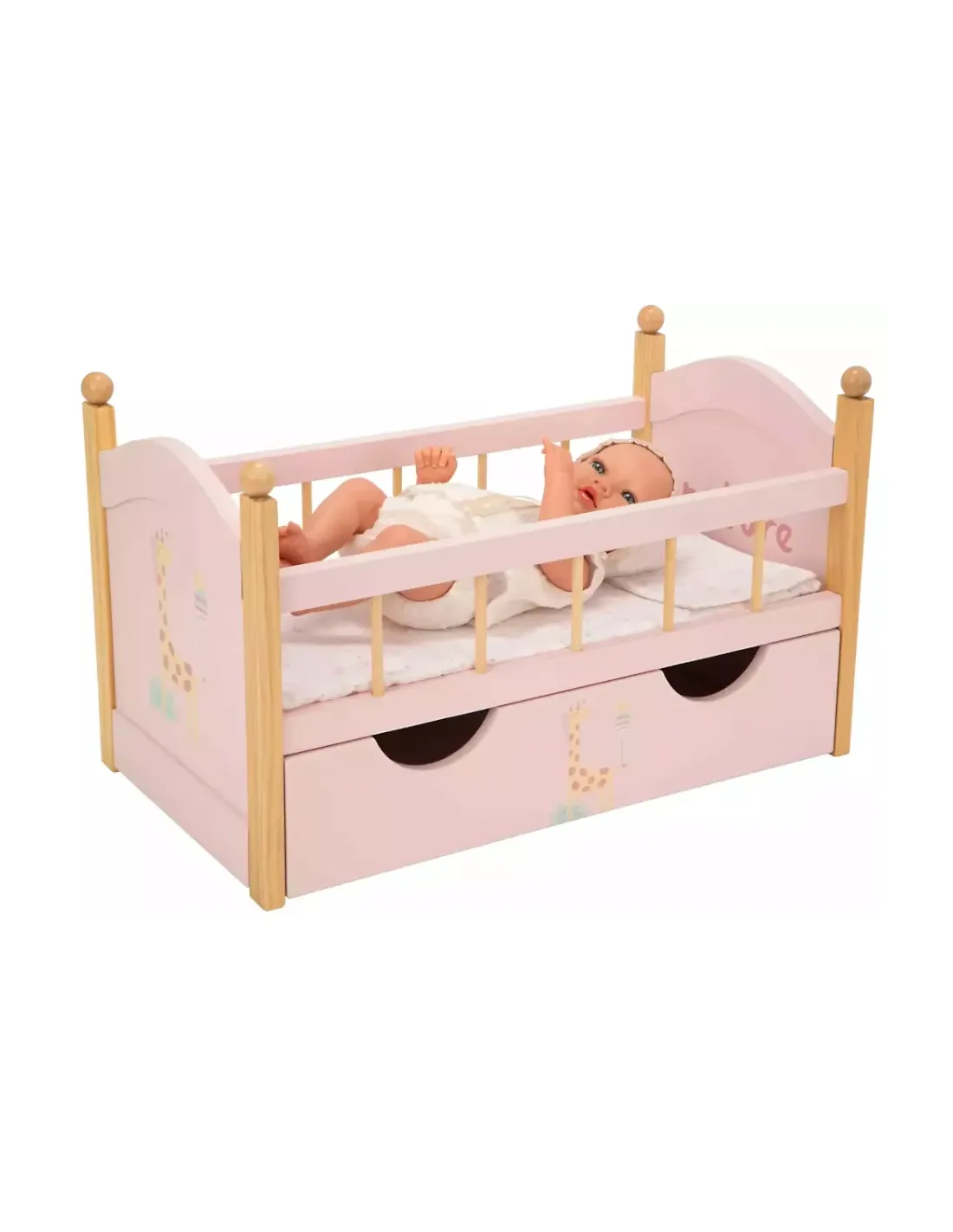 Elegante lettino, collezione Firenze, con cassetto porta oggetti, di colore rosa e disegni color pastello!