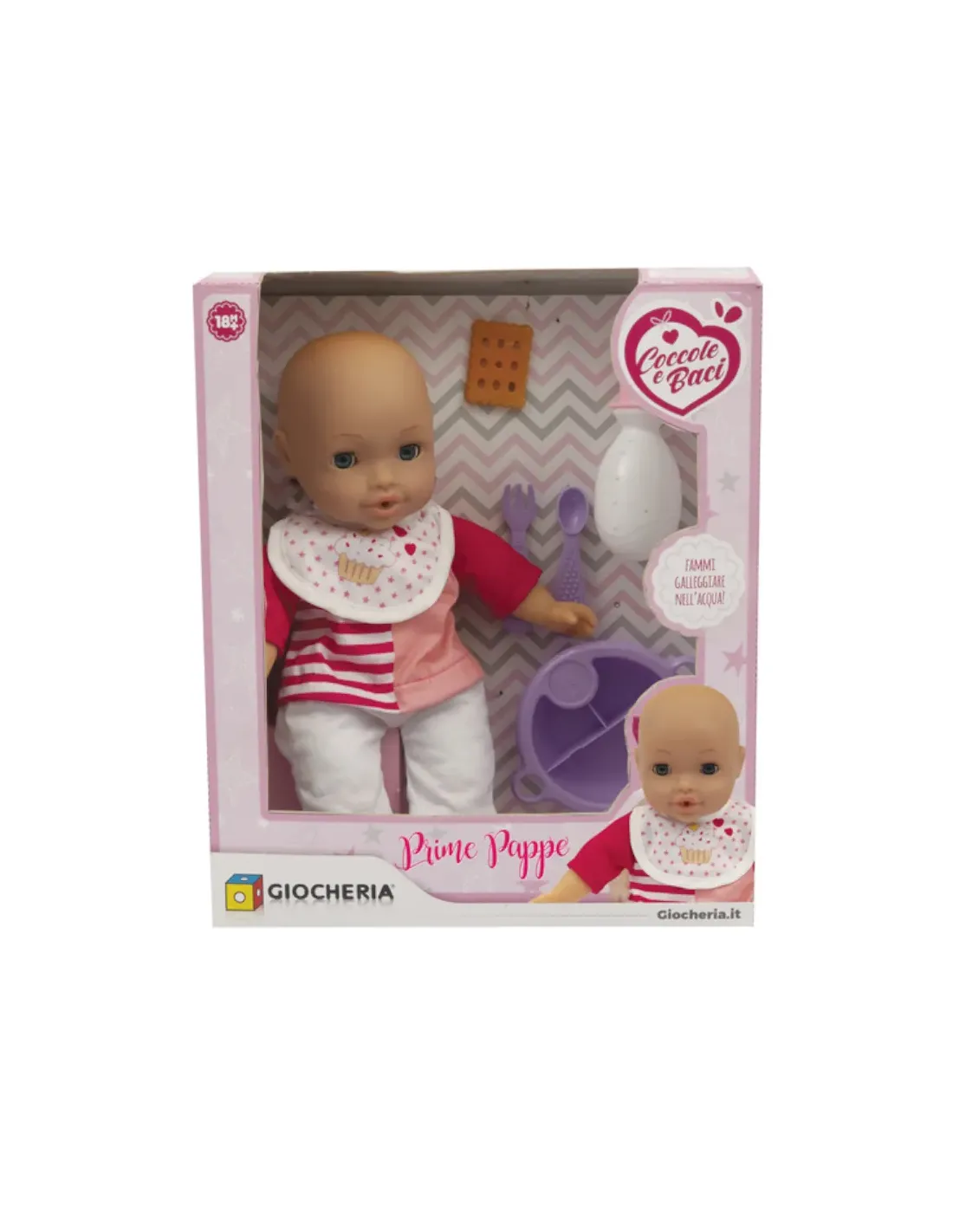Tenero bambolotto lungo 38 cm, molto particolareggiato nei dettagli, con pianto realistico. E' un bébé profumato con un grazioso vestitino rosa. E' completo di culla in cui riposare, di un piccolo peluche da coccolare e di un ciuccio per consolarlo quando piange. Venduto in scatola rigida, può essere un elegante gioco da regalare!