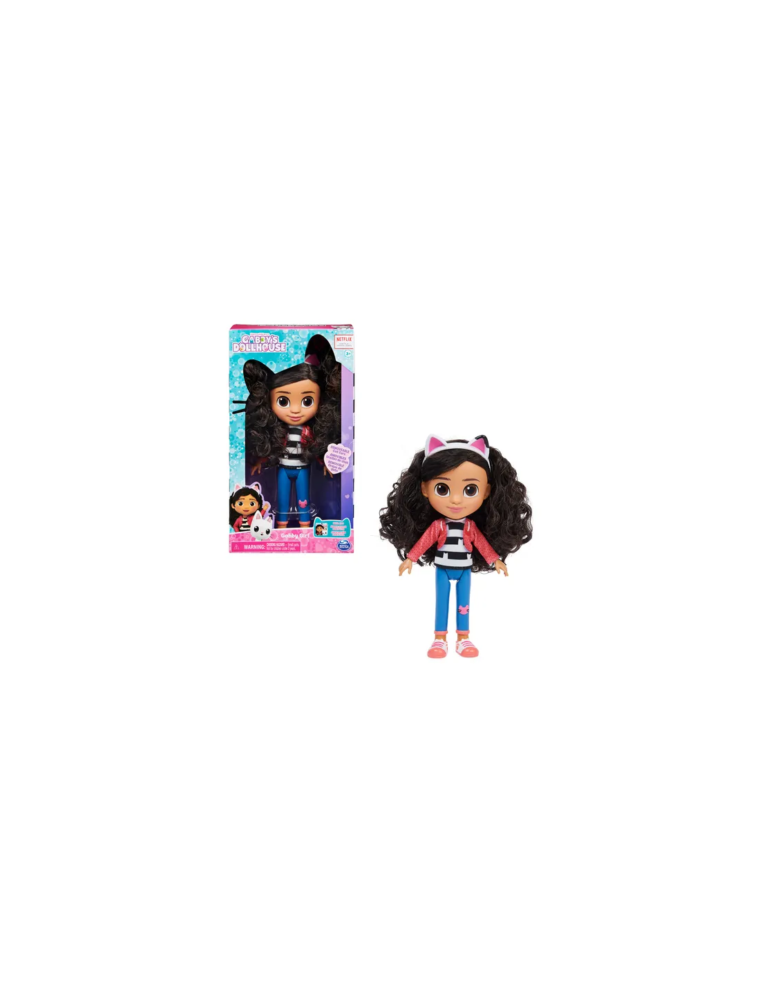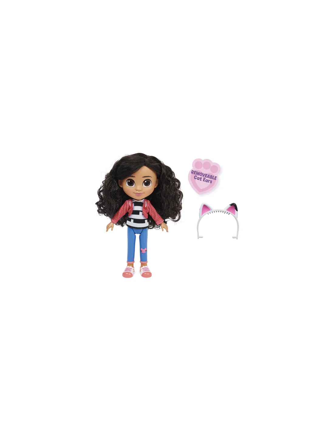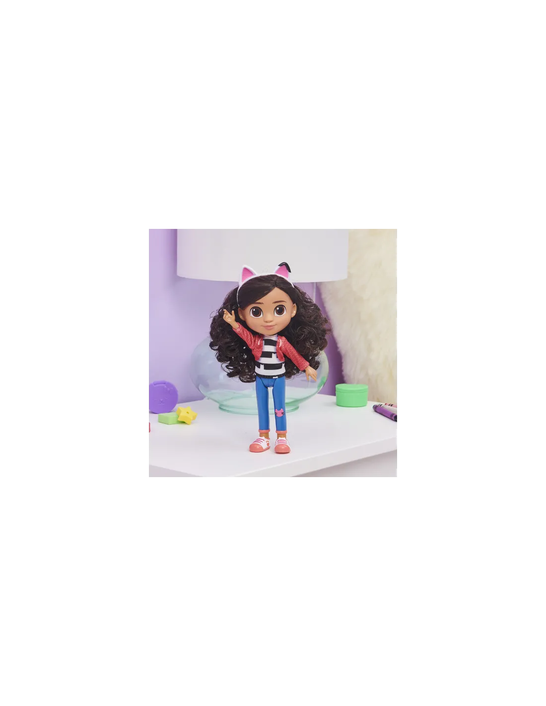 La bambola di Gabby indossa gli stessi vestiti che si ritrovano nella serie televisiva, i capelli sono pettinabili e soffici, questo grazioso personaggio è dotato delle sue immancabili orecchie da gatto. Infilale sulla testa di Gabby ed immagina di rivivere le avventure come nella serie televisiva, la bambola di Gabby e tutti i giochi della linea sono un buon regalo per tutte le bambine.
