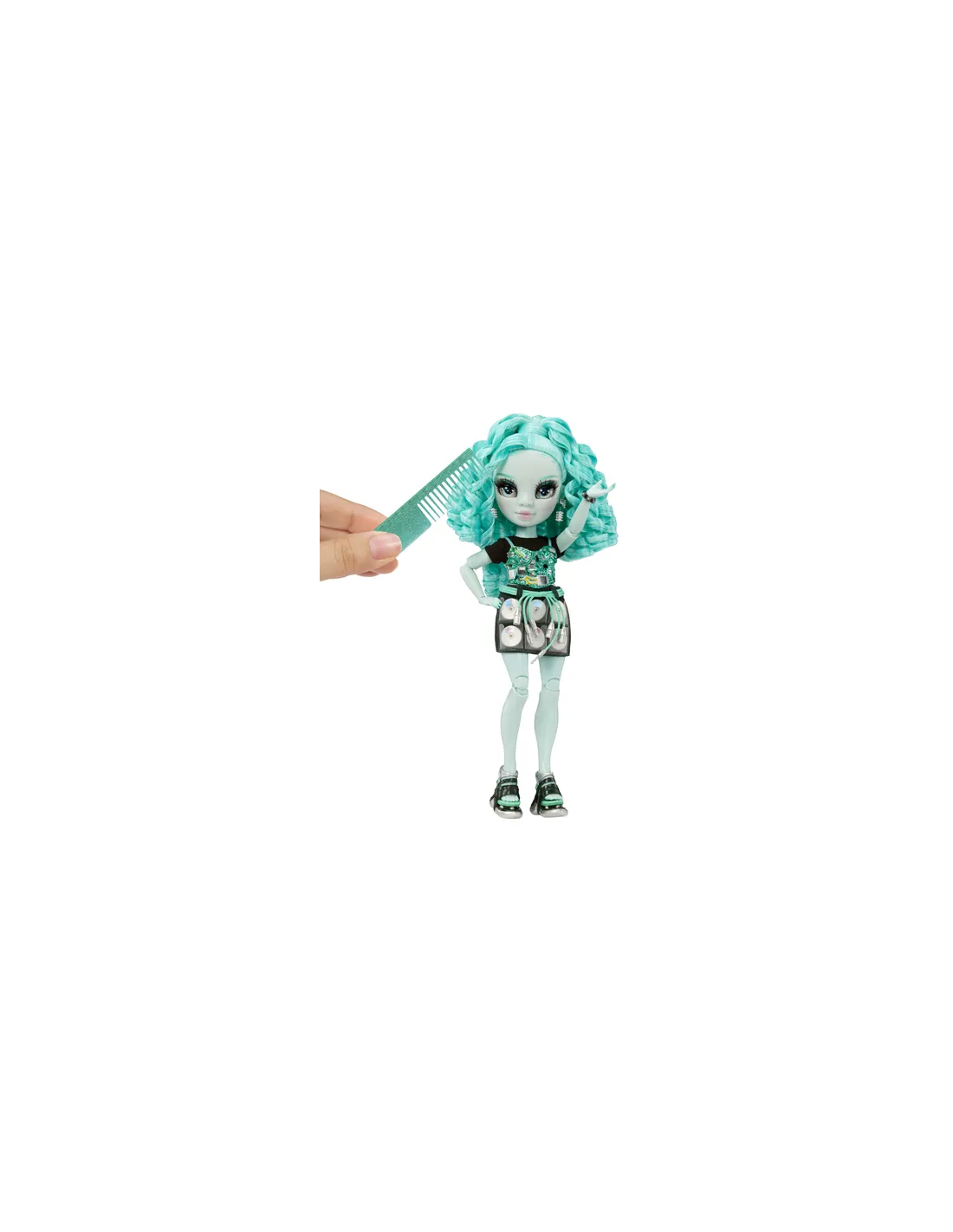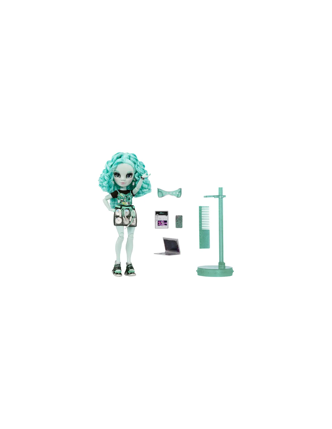 Bambola flessibile e posizionabile poiché è completamente articolata, è facile e divertente giocarci; la sua testa, le braccia, le mani e le gambe si piegano in tantissime pose divertenti, comprese le spaccate. Puoi anche esporla sul supporto per bambola incluso nella confezione; Kim Nguyen è vestita di blu scuro e fa parte del liceo Rainbow.