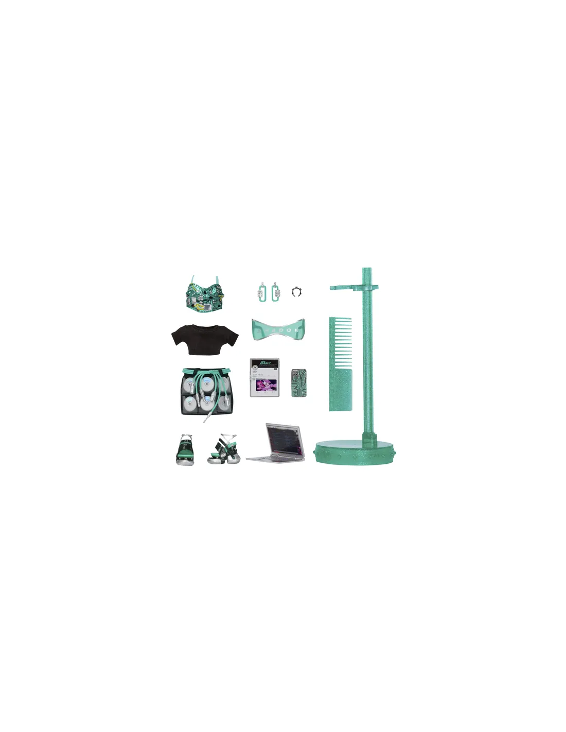 Ti presentiamo Skyler Bradshaw nel suo iconico set da gioco Rainbow High Dream & Design Fashion Studio; viene fornito con tutti gli elementi essenziali: macchina da cucire, ferro da stiro, tavolo da lavoro alla moda, quaderno degli schizzi da svelare con l'acqua, manichino funzionale, veri tessuti colorati Rainbow High ed un'esclusiva bambola Skyler.