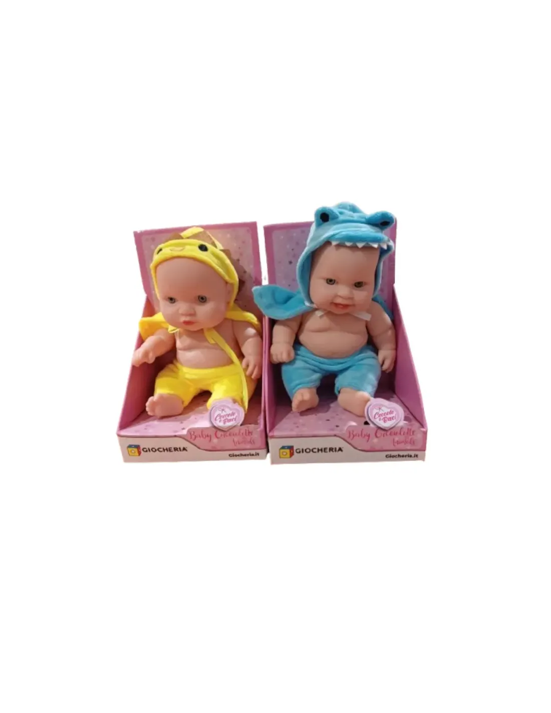 Piccolo bebè dalle guance paffute con indosso pigiamino e cappellino o fiocchetto. Prenditene cura e portalo con te, è alto solo 20 cm! Disponibile in 4 modelli diversi. Aiuta a stimolare le abilità sociali e cognitive nei più piccoli.