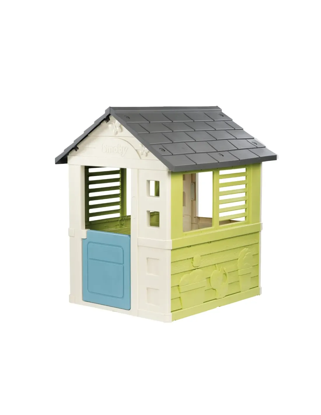 Casetta che include attività di apprendimento sulla natura; con: 2 bidoni per la raccolta differenziata, attrezzi e giardinaggio urbano, acqua piovana, mulino a vento, finto pannello solare, nido e mangiatoia per uccelli. Robusta, facile da montare e con sistema Anti-UV (per una minore perdita di colore ed una migliore resistenza).