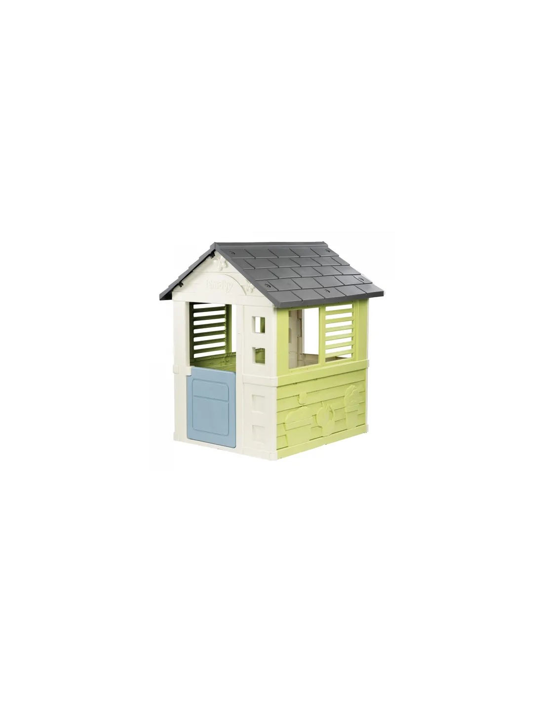 Casetta su piattaforma alta 70 cm dotata di: una mezza porta, 2 finestre con persiane, un oblò, 2 persiane scorrevoli, una scaletta ed 1 scivolo di 1,50 m. Struttura stabile: trattamento anti UV che garantisce una buona resistenza ed una migliore durata dei colori nel tempo. Sulle diverse pareti sono disegnati alcuni animali (gatti, uccelli, ecc..). È...