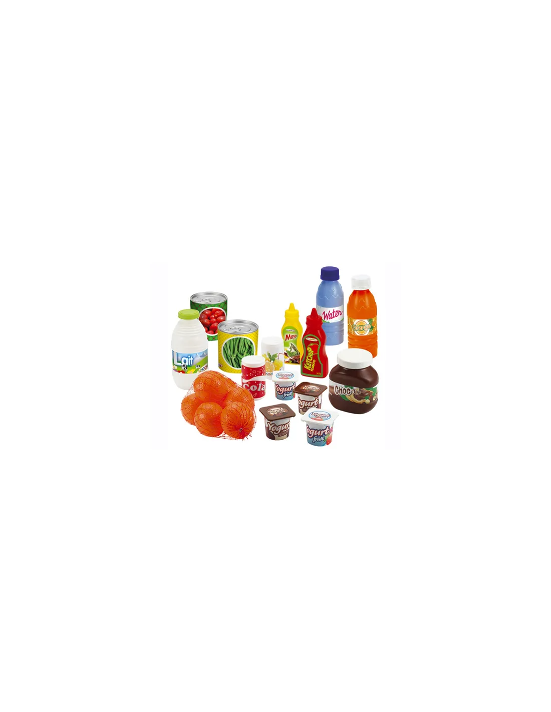 Questa confezione contiene le forniture essenziali per affrontare la giornata: 1 bottiglia d'acqua, 1 bottiglia di succo d'arancia, 1 bottiglia di latte, ketchup, maionese, 2 lattine, 1 vasetto di creme spalmabili, 4 yogurt, 2 bibite e 6 arance. Consigliato a partire dai 18 mesi grazie alle confezioni grandi degli articoli. Di fabbricazione francese..