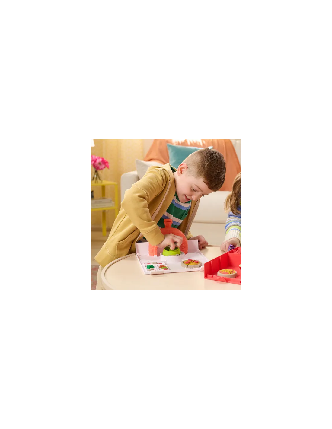 Realizza ottime patatine fritte di tutti i tipi: con la macchina in dotazione, affetta le patatine fritte con il coltello e crea waffle wacky con lo stampo. Aggiungi ketchup o salsa calda con la bottiglia rossa Play-Doh Drizzle da 56 g., cospargi il sale e le erbe finte sulla parte superiore con il macinino. Hai un sacco di modi per decorare..