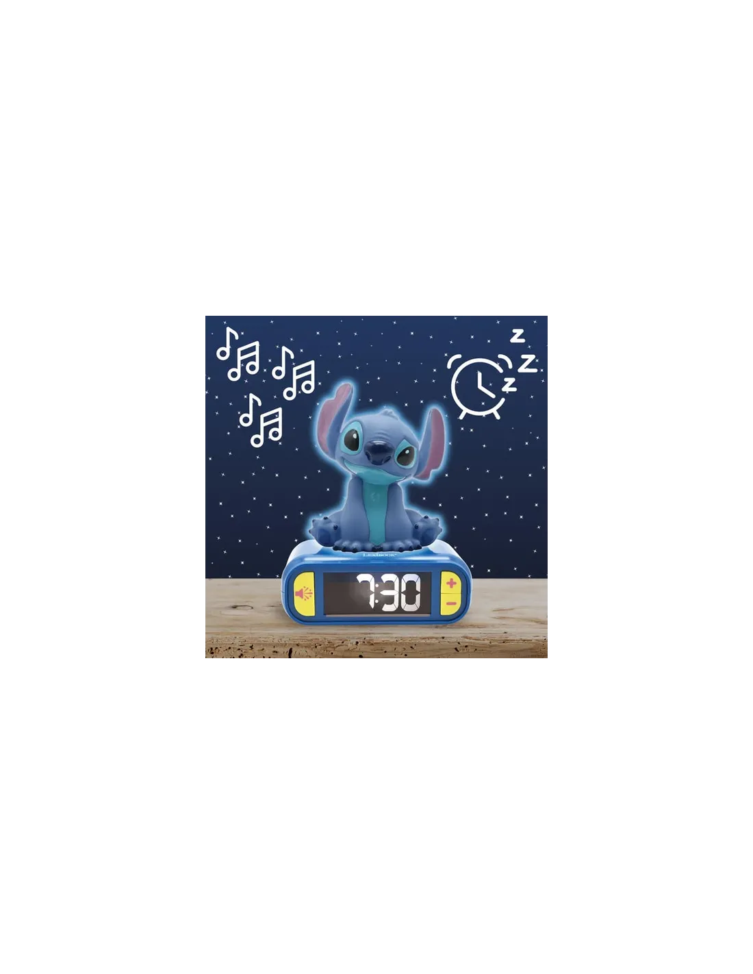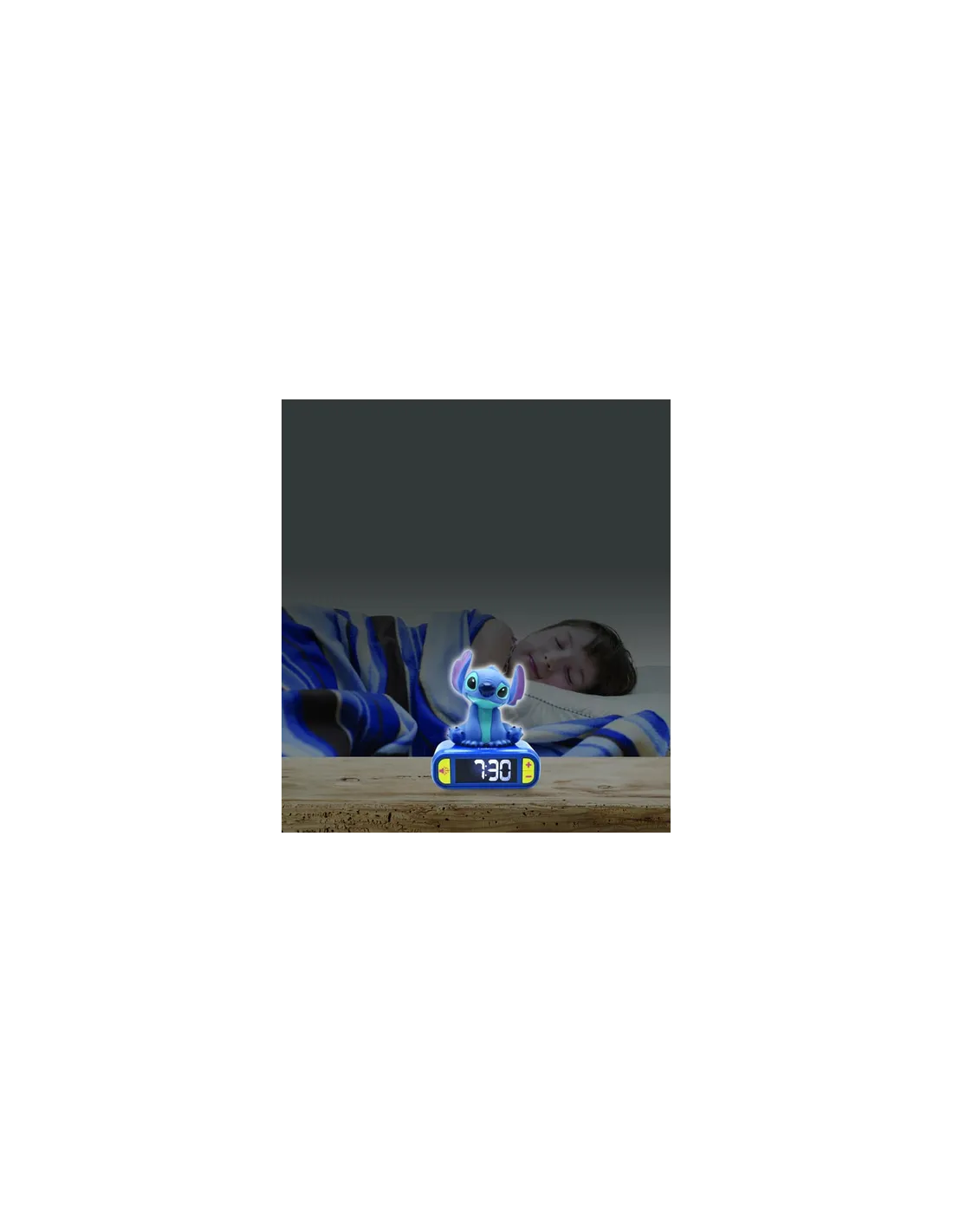 Un adorabile design con Stitch che si illumina per qualche minuto quando lo premi, display LCD retroilluminato in modo soffuso, pulsante per attivare gli effetti sonori. Orologio sveglia con volume regolabile e diverse suonerie, funzione di posticipo della sveglia!