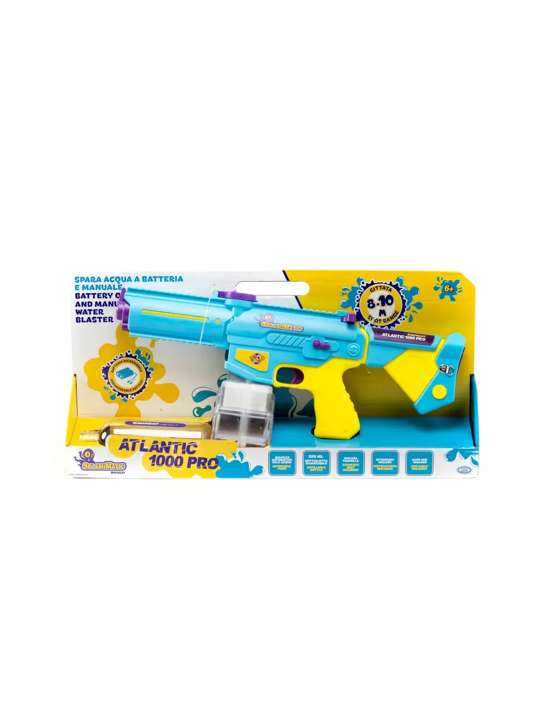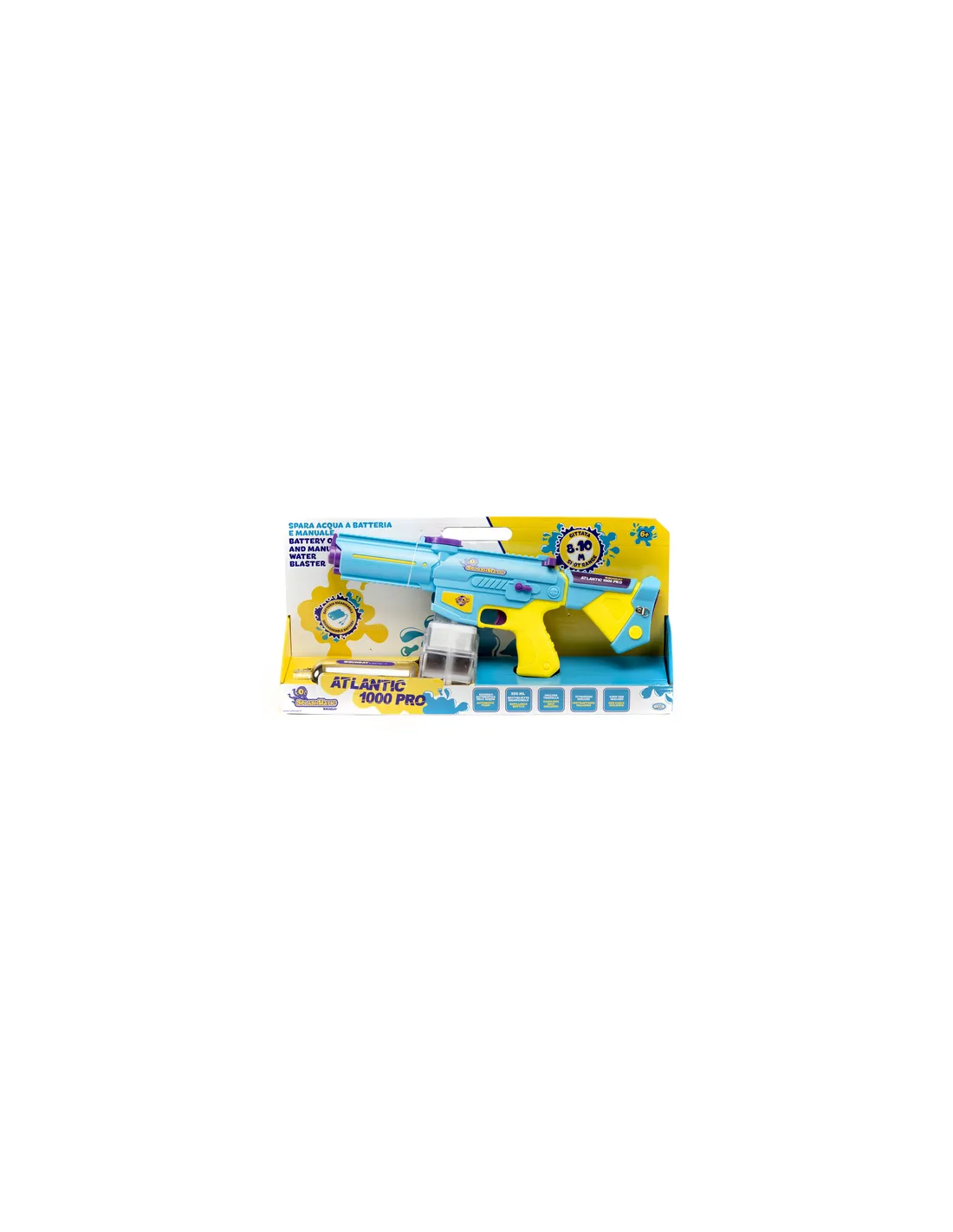 Domina ogni battaglia con Splashmatic Indian: potenza, tecnologia ed autonomia in un solo spara acqua; pensato per i veri appassionati dell'azione estiva, Splashmatic Indian è lo spara acqua a batteria che unisce prestazioni estreme e funzionalità avanzate. Con una gittata impressionante di 9 – 10 metri ed una capacità da 1000 ml, sei pronto a resistere a...