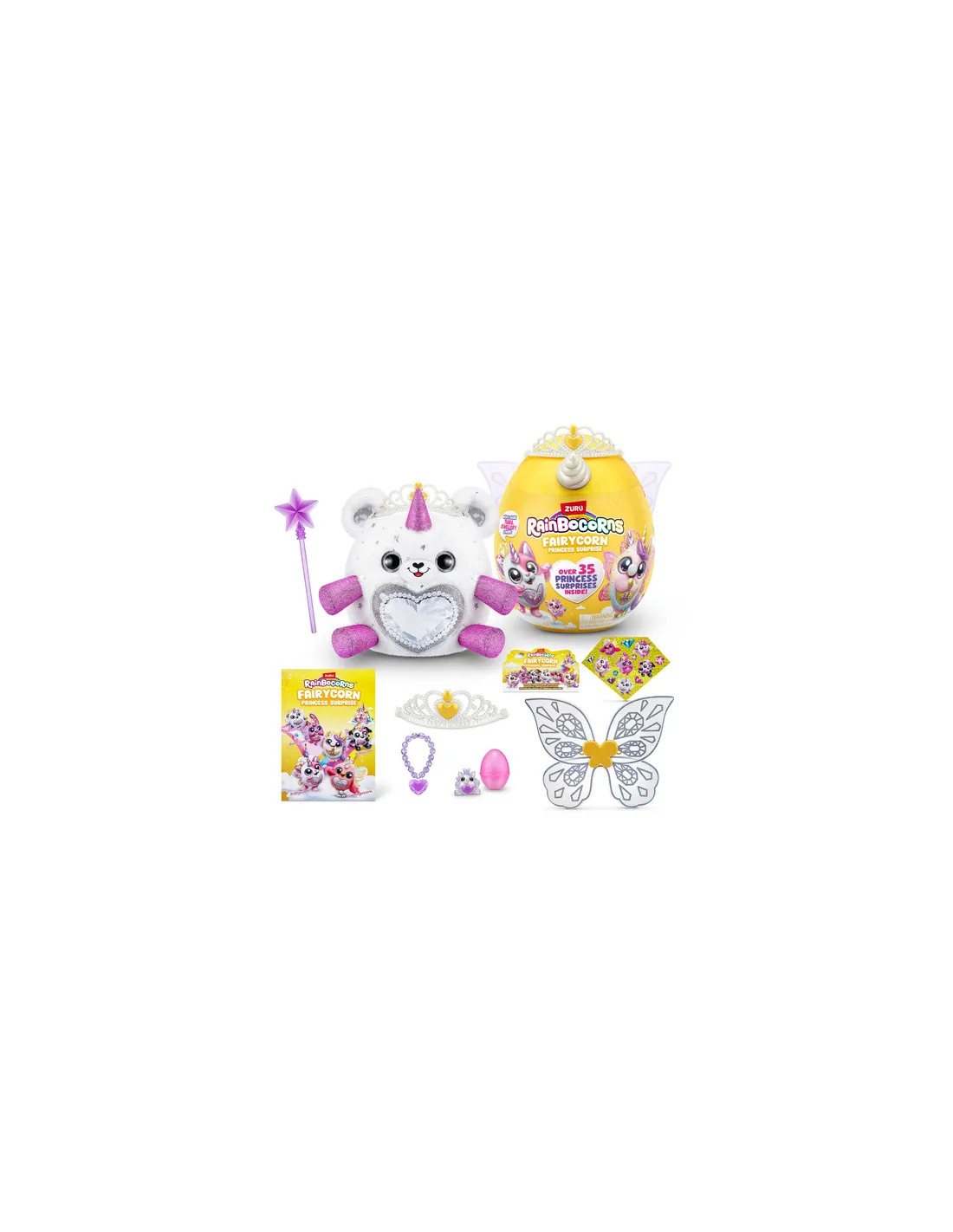Queste fate sono principesse reali; ogni confezione contiene oltre 35 sorprese da scoprire, tra cui una tiara da principessa ed una bacchetta magica; condivi gli accessori con il tuo Rainbocorn per trasformarvi entrambi in principesse delle fate.