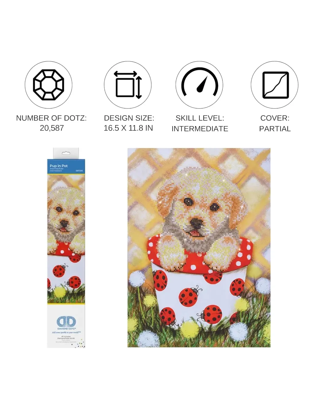 Questo passatempo creativo si chiama Diamond Dotting ed è la nostra interpretazione del diamond painting! I Diamond Dotz permettono di realizzare un'immagine con dei piccoli cristalli sfaccettati, Dots di resina. Basta posizionarli, seguendo la semplice legenda colori/simboli fornita. Terminata la sessione di lavoro basterà rimettere il film protettivo....