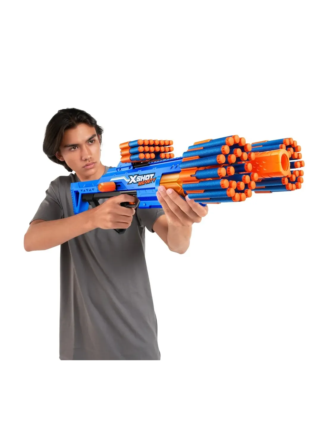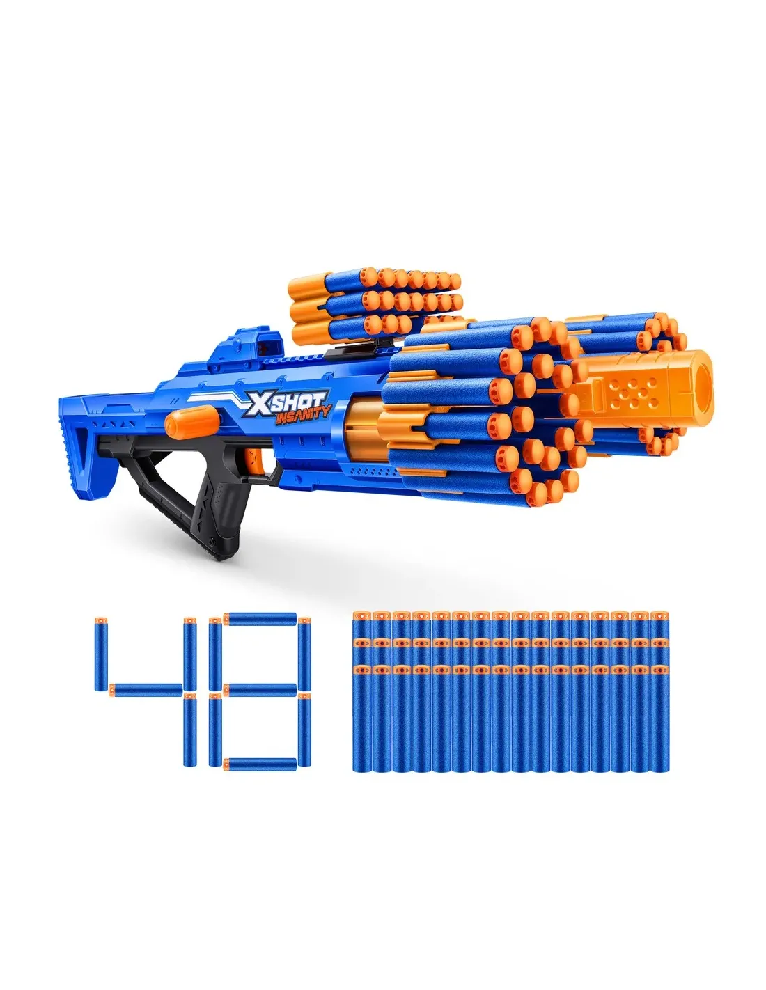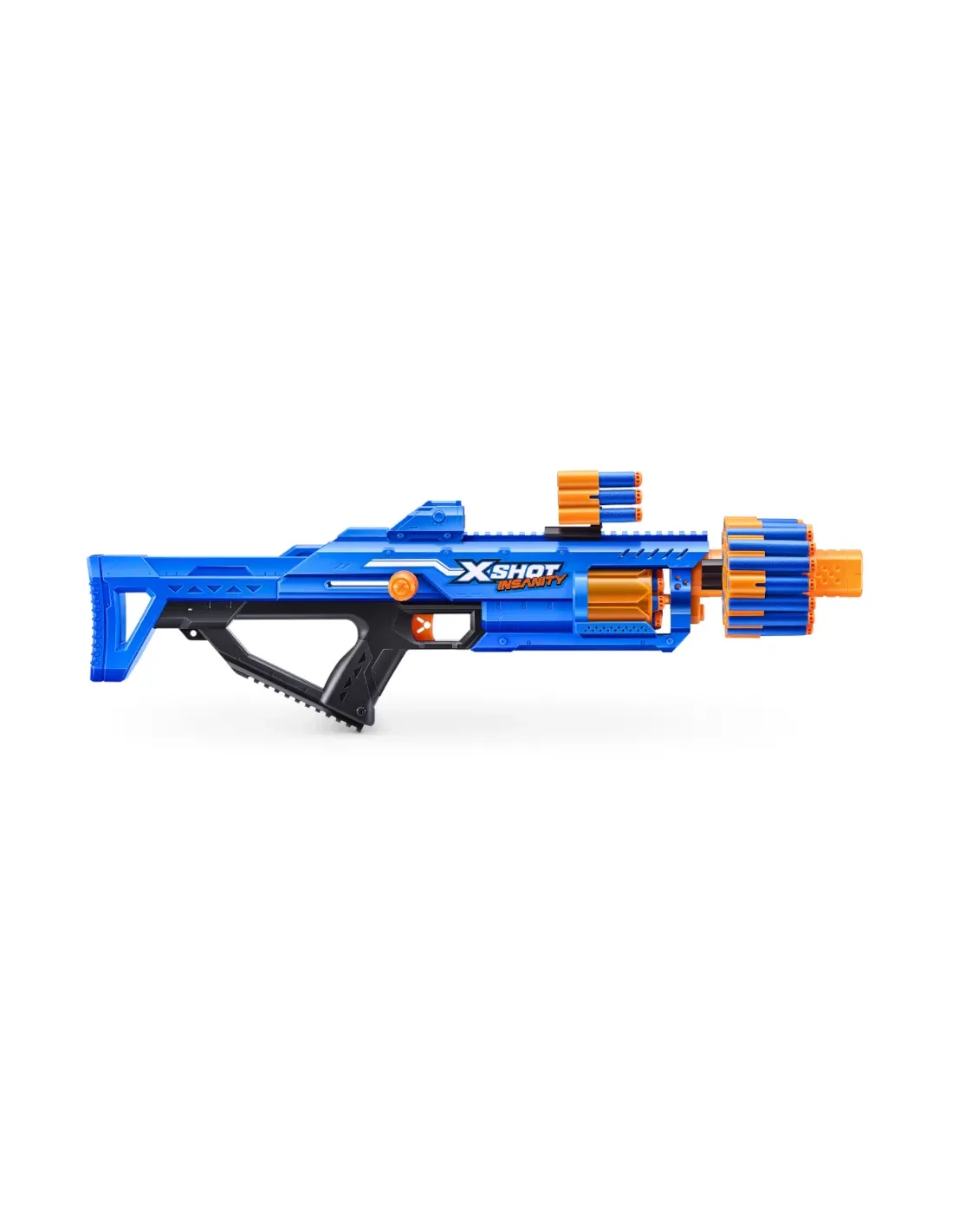 Combo folli, munizioni ed azione con Xshot Insanity, la Xshot Insanity Mad Mega Barrel è così grande che è folle; carica la sua canna da 72 dardi per eliminare più bersagli fino a 27 m di distanza con precisione e potenza totali. Inoltre, è dotata di una quantità folle di spazio per contenere altri 66 dardi per tenerti impegnato e carico in battaglia; i...