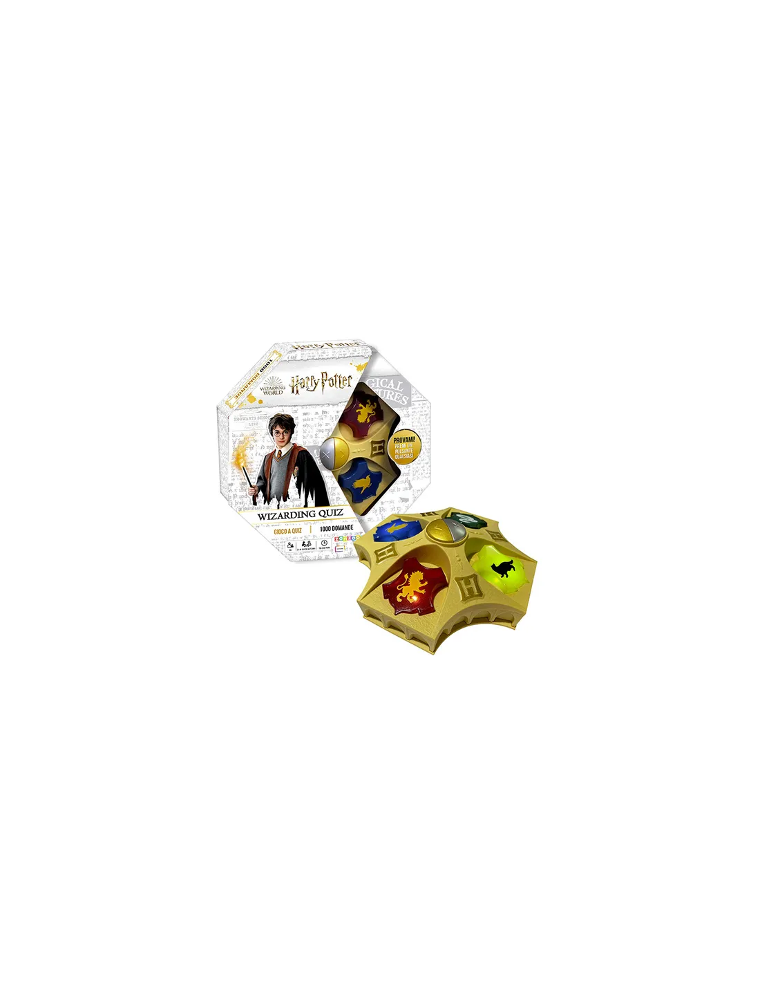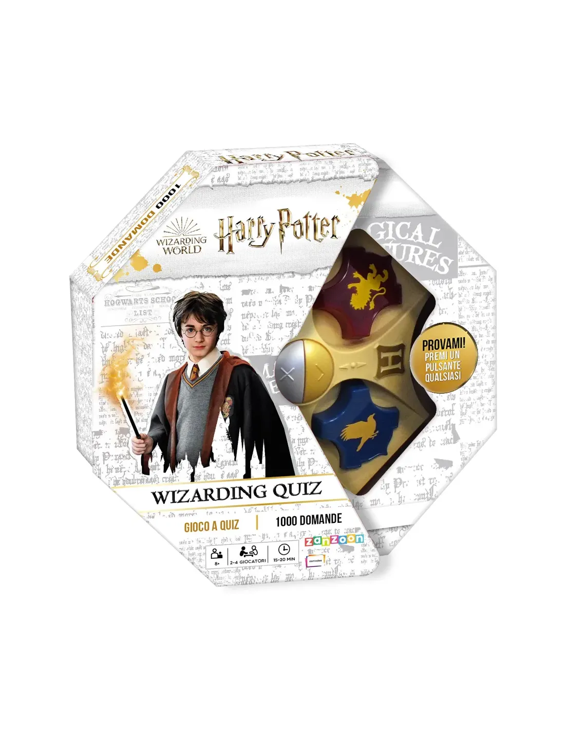 Espandi il tuo vocabolario di parole magiche, grazie all'esclusivo glossario di termini della serie Harry Potter incluso; puoi usare l'incantesimo "Revelio" per scoprire il punteggio più alto che puoi ottenere con le tue lettere.. No, non è vero: non puoi lanciare incantesimi per vincere, ma posizionare una parola su una casella premio Hogwarts ti premia...