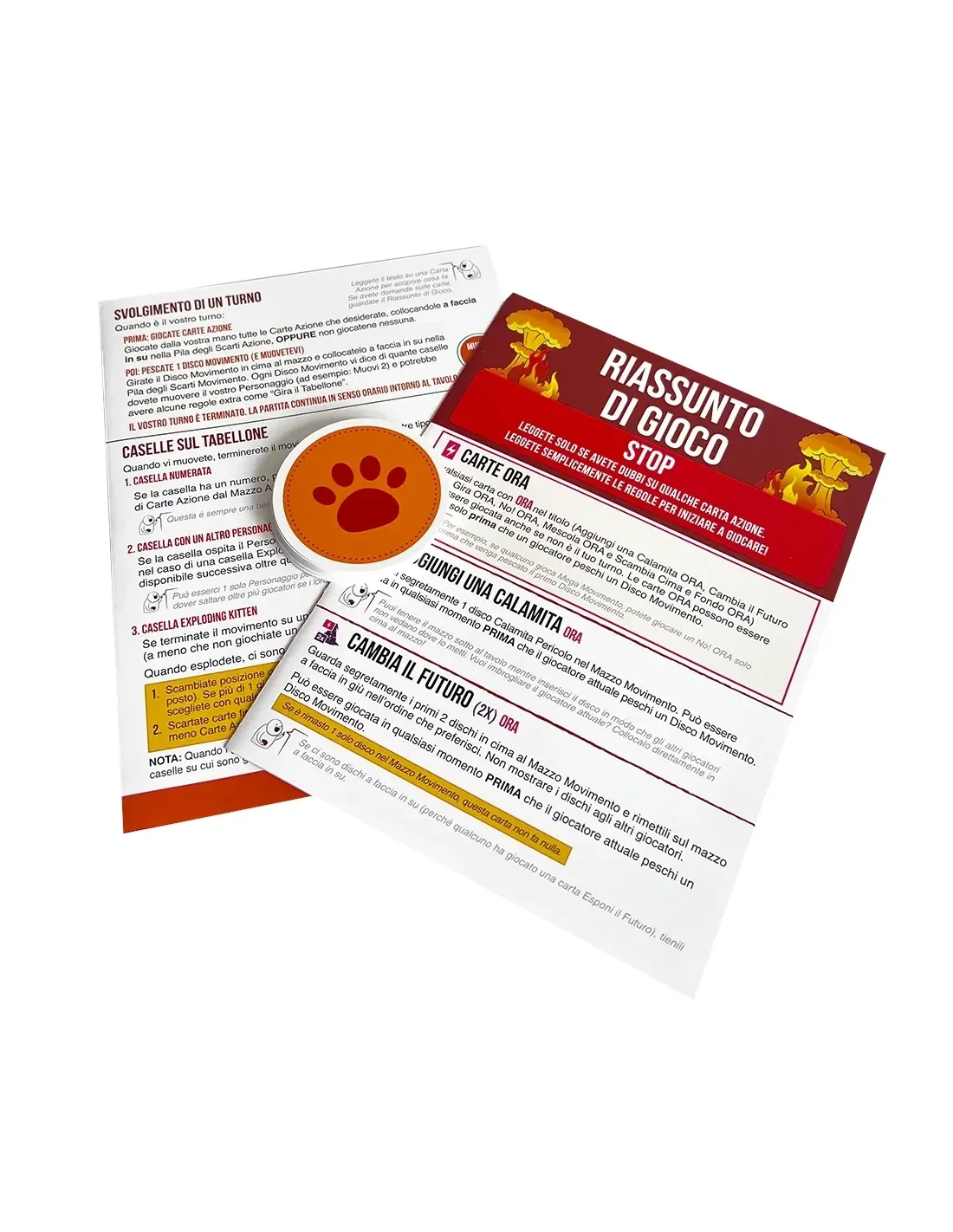 Qui troverete alcune carte tratte dalle espansioni e, naturalmente tutte le carte del gioco base per 10 giocatori; come si gioca: i giocatori giocano carte dalla propria mano e concludono il turno pescando dal mazzo centrale, con il rischio quindi di pescare una carta Exploding Kitten: a quel punto chi ha pescato la carta esplode, è eliminato, a meno che...