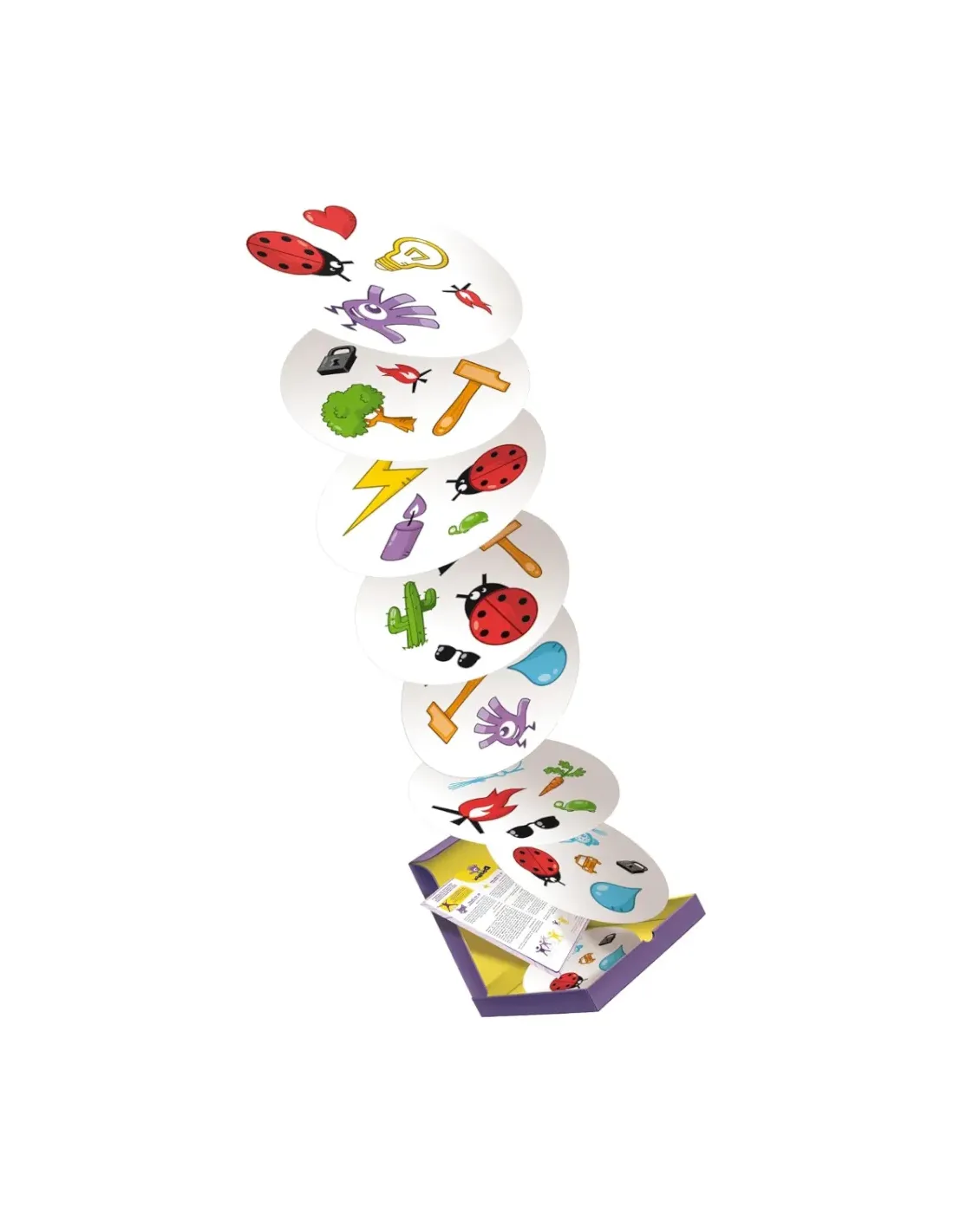 In Dobble c'è sempre un solo simbolo in comune tra due carte qualsiasi, cercate di essere i primi a trovarlo; cinque veloci party game, cinque modi per divertirvi..