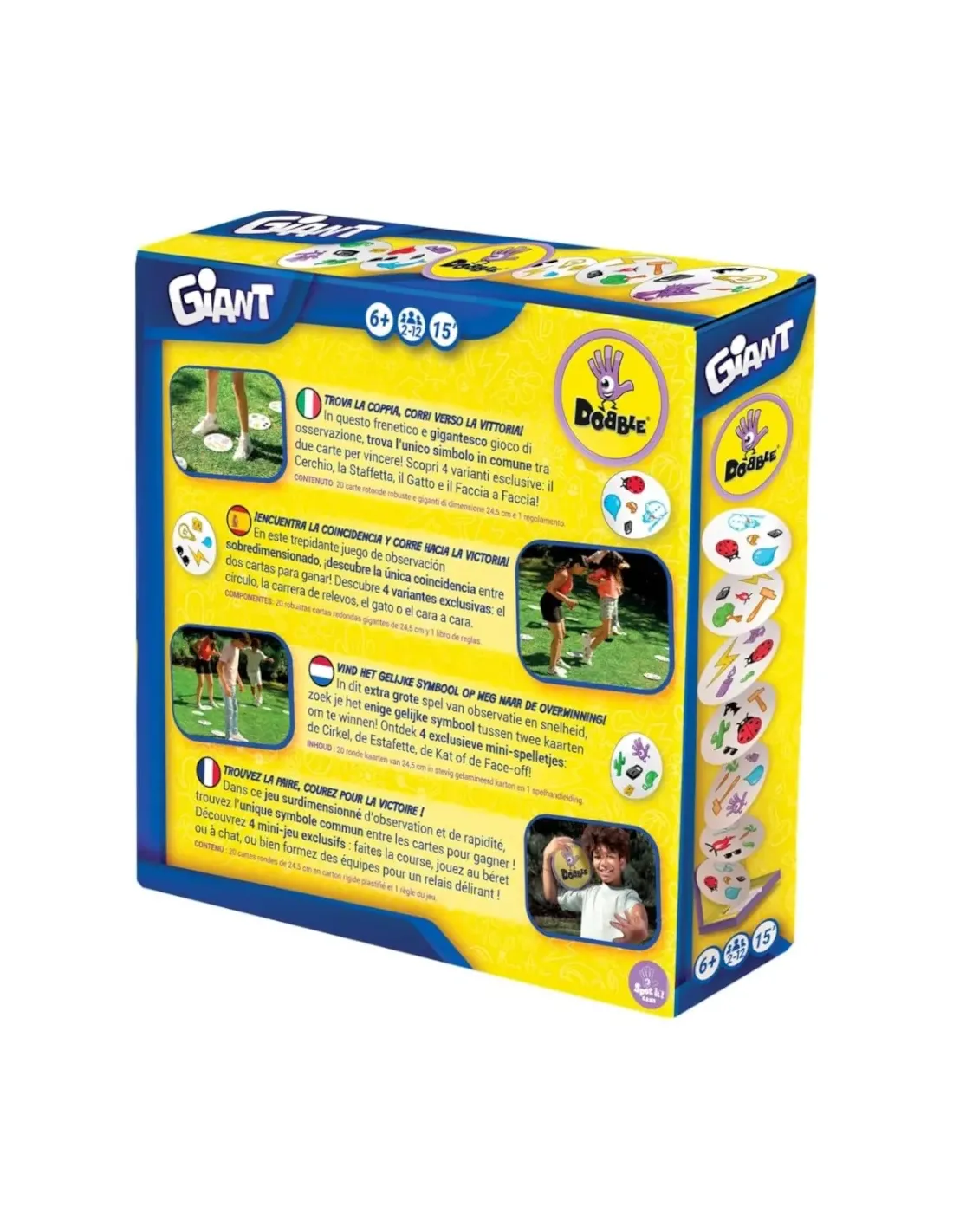 Questa versione di Dobble è ancora più frenetica, possiamo scegliere tra 2 velocità: una più lenta ed un'altra più rapida e mentre il totem gira i giocatori dovranno trovare i simboli in comune tra le due carte. Sfida il tuo avversario a trovare 3 simboli prima di te, un modo di giocare a Dobble nuovo di zecca che ti farà girare la testa!