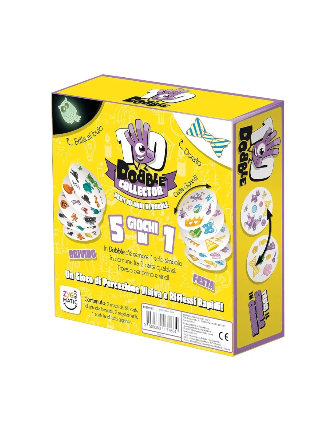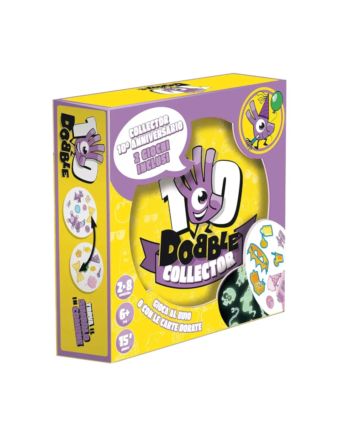 In Dobble c'è sempre un solo simbolo in comune tra due carte qualsiasi, cercate di essere i primi a trovarlo; cinque veloci party game, cinque modi per divertirvi..