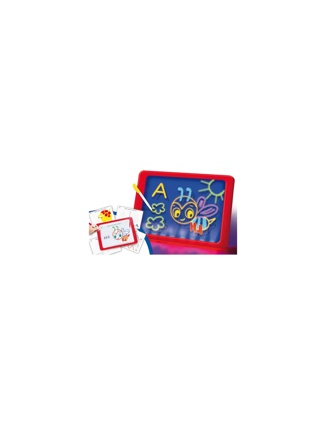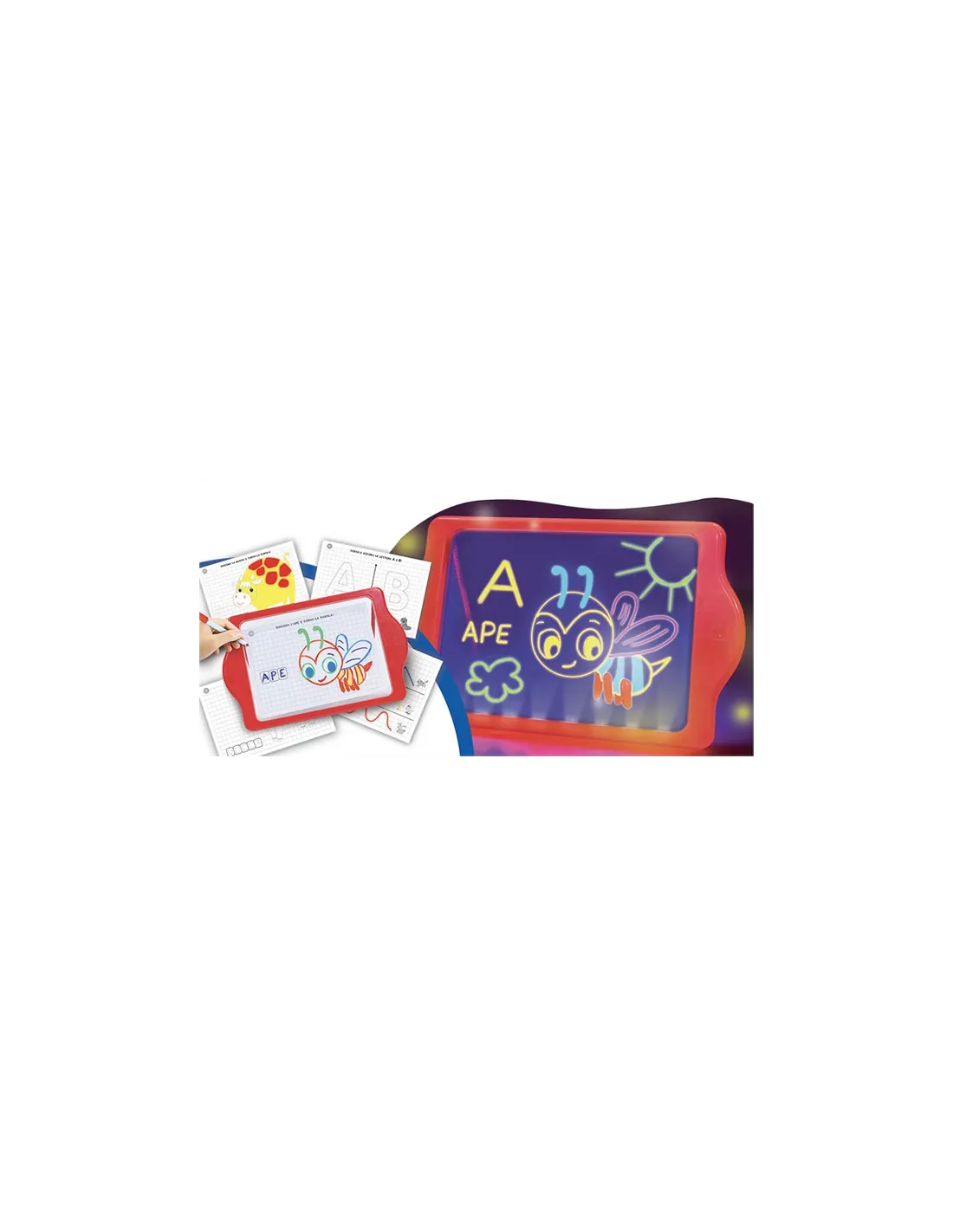 Con questa lavagna a led i disegni prendono ancora più colore e vita come anche le lettere e le parole.. in dotazione ci sono pennarelli fluo e le schede da ricalcare. Non c'è più limite alla tua fantasia ed al divertimento nell'apprendere a scrivere e leggere grazie alle schede didattiche a difficoltà progressiva!