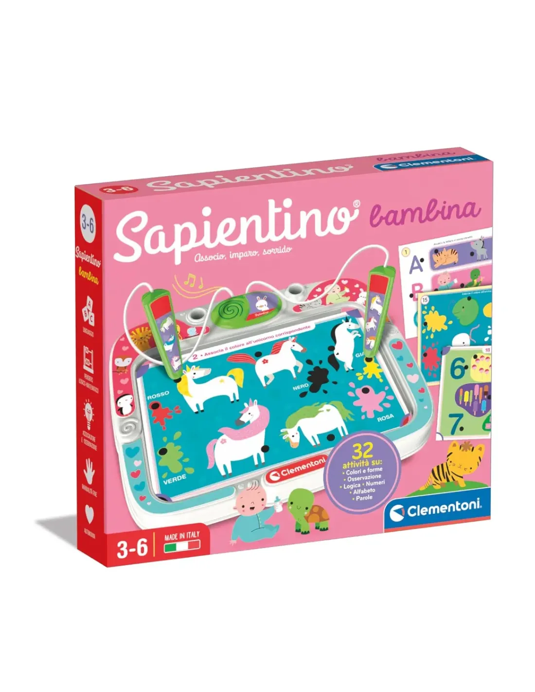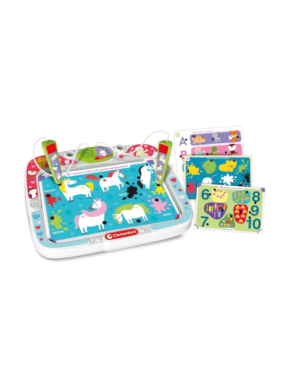Un divertente gioco a quiz progettato per i bambini a partire dai 2 anni; il programma di schede educative è realizzato con illustrazioni chiare e semplici, pensate per aiutarli a svolgere le prime associazioni logiche.. Il banchetto è dotato di maniglia e di un pratico vano porta schede. La penna ergonomica ed interattiva aiuta il bambino a scoprire la...
