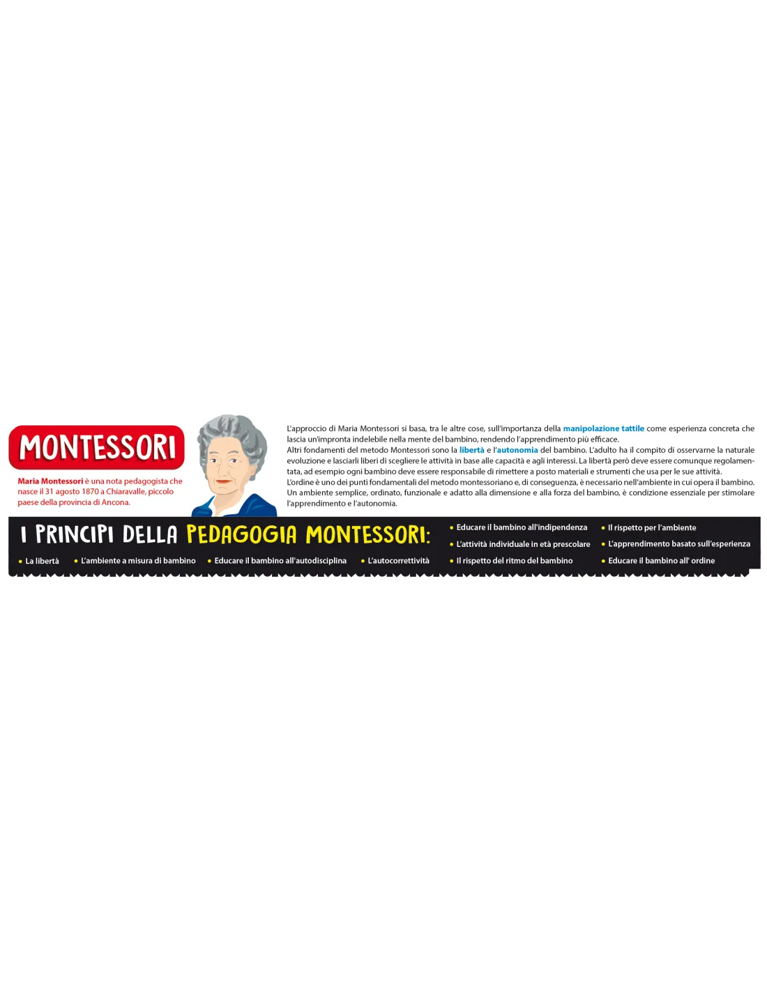 Il gioco La Mia Casa consiste nel prendere dal Gioco del Disordine gli elementi sagomati e sistemarli nelle stanze della casetta da montare. Per guidare il bambino nel gioco, ciascun elemento ha un colore di sfondo che corrisponde a uno dei colori delle stanze. Per cui, la vasca da bagno ha lo sfondo blu come il pavimento del bagno; il letto ha lo sfondo verde come il pavimento della cameretta dove va collocato, e così via. Con questo ricco e allegro gioco, infine, si può liberare la fantasia e giocare liberamente. In linea con i fondamenti della pedagogia Montessori, questo gioco educa il bambino all’indipendenza, all’ordine e all’autodisciplina. Inoltre attraverso l’esperienza tattile e la manipolazione dei materiali, il bambino apprende e impara efficacemente.