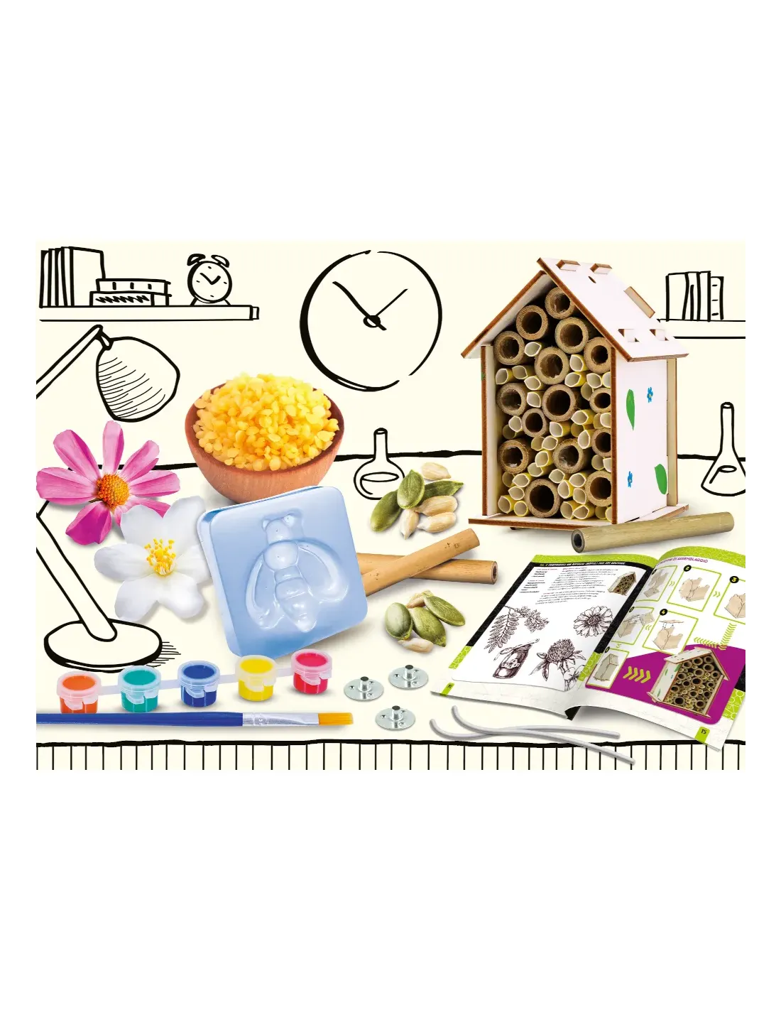 Un Kit completo per realizzare saponette dalle forme fantastiche, la confezione contiene tutto l'occorrente e tanti strumenti per sperimentare in piena sicurezza; prepara la glicerina ed usa gli stampi, poi divertiti a regalare le tue creazioni alle amiche. Il manuale illustrato ti spiega passo passo come fare e ti racconta la "profumata" storia dei saponi..