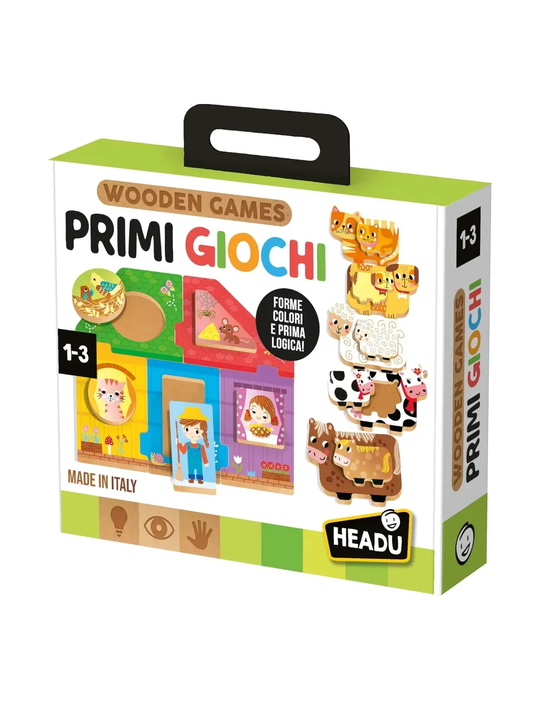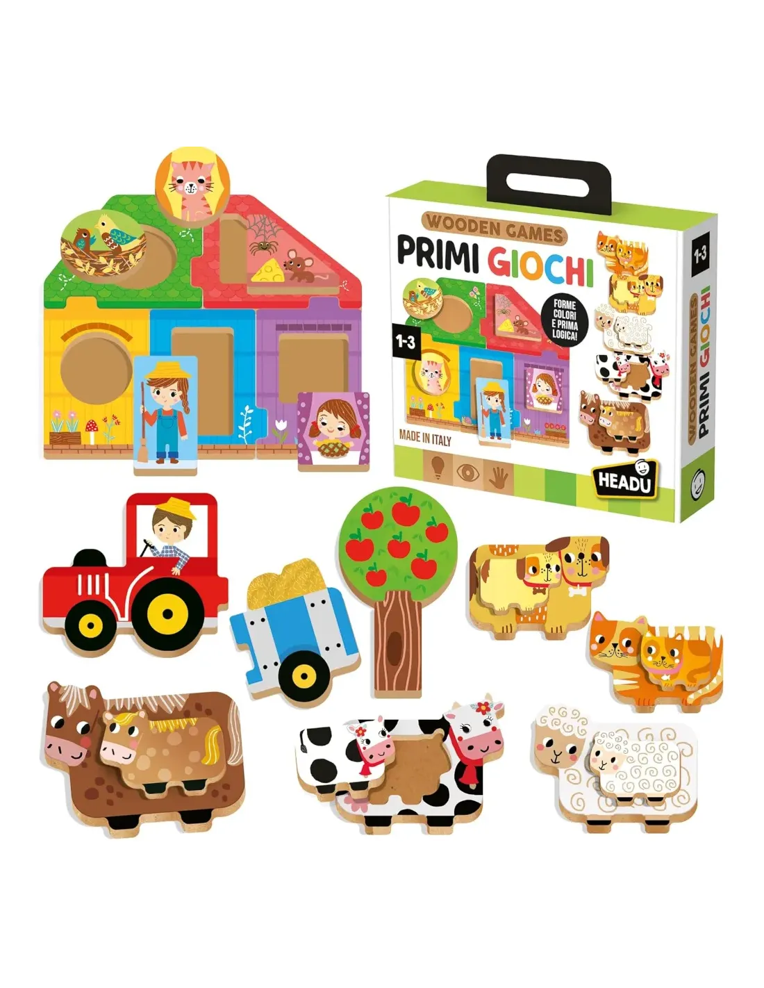 Tante associazioni logiche per imparare a distinguere i colori; toccando la serigrafia ruvida, il bambino sviluppa la sensibilità tattile
