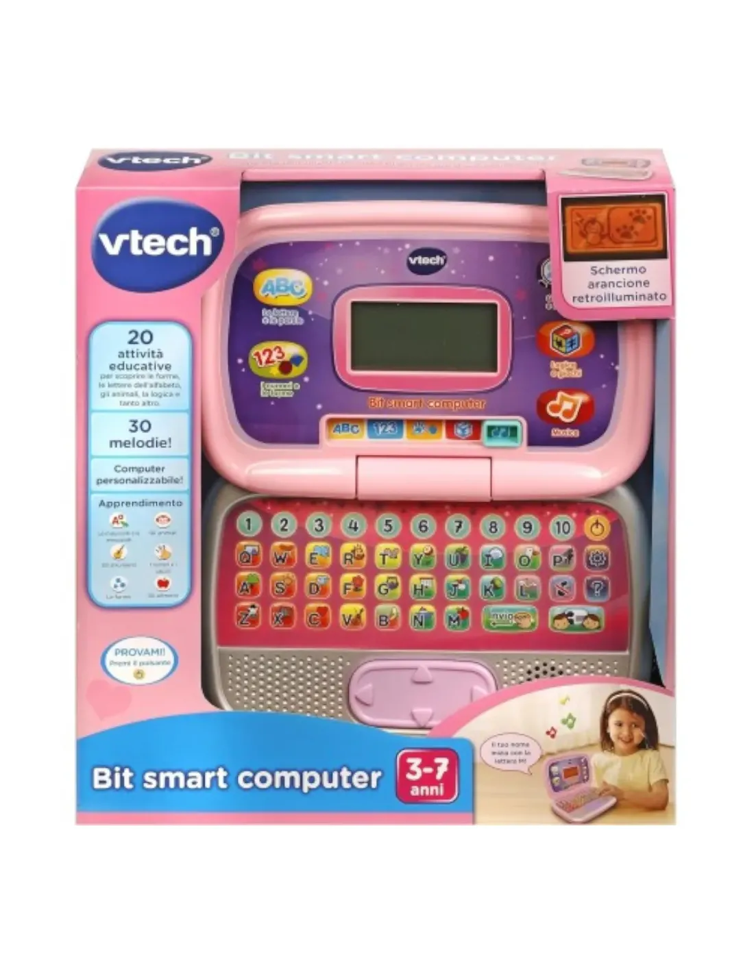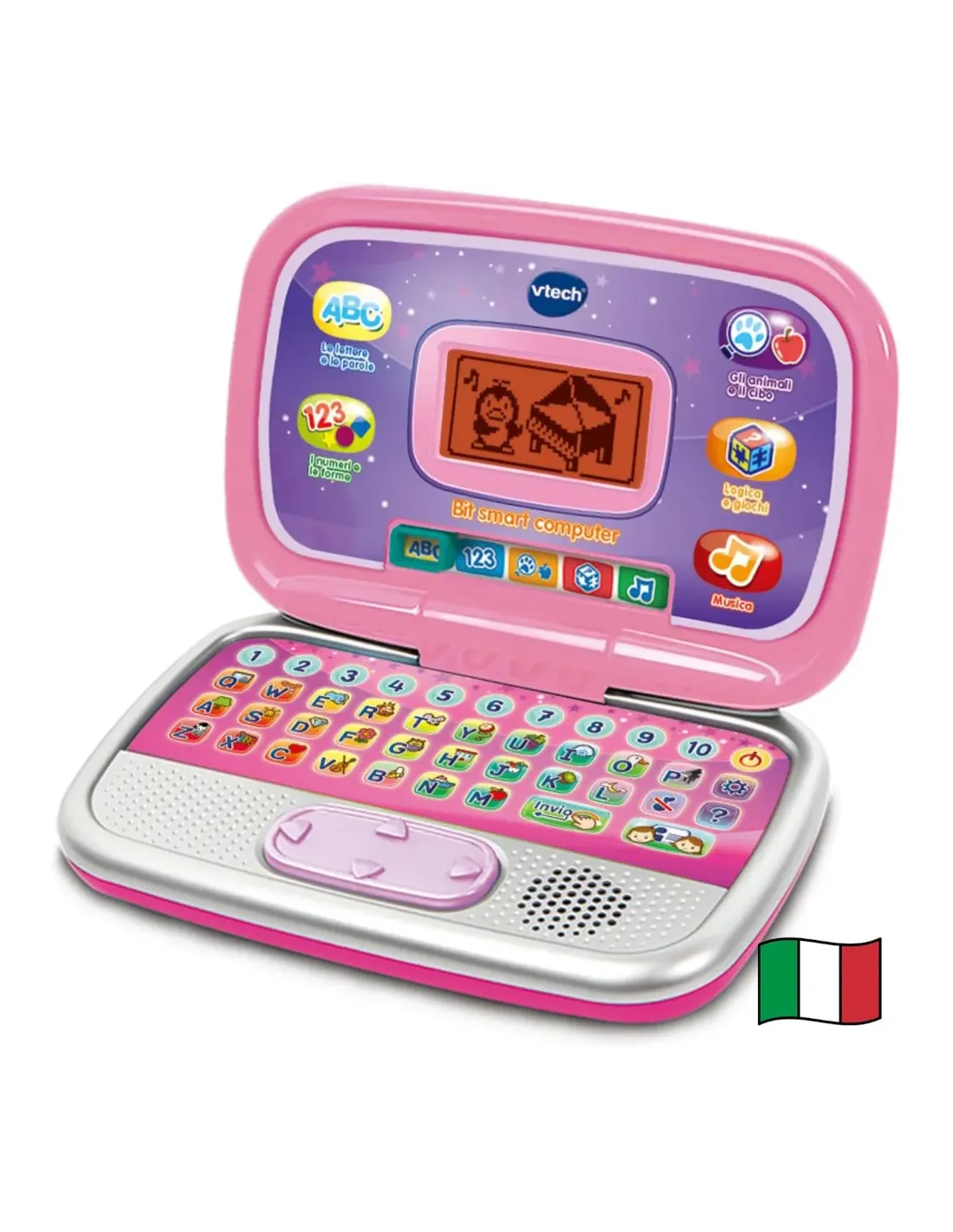 Bit Smart computer di VTech è il primo computer parlante con suoni e musica, grazie al quale il tuo bambino può divertirsi ad imitare i più grandi; programmi e funzioni: 20 attività per scoprire le forme, gli strumenti musicali, le parole e come funziona la logica. Diversi livelli di progressione: più il tuo bambino gioca, più aumenta la difficoltà....
