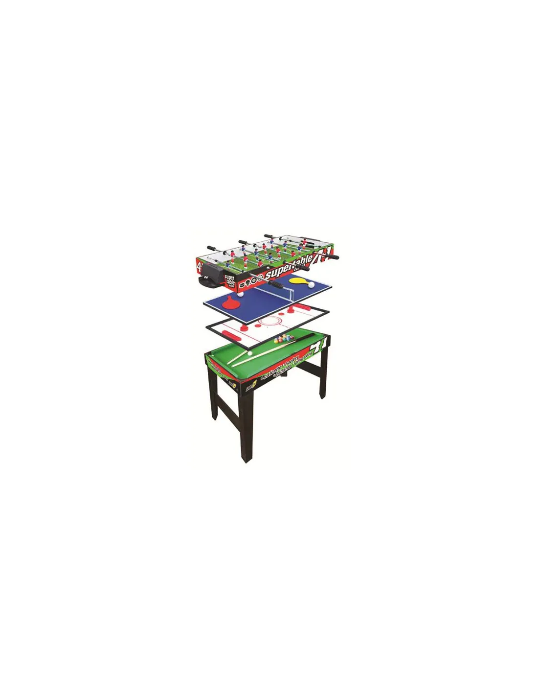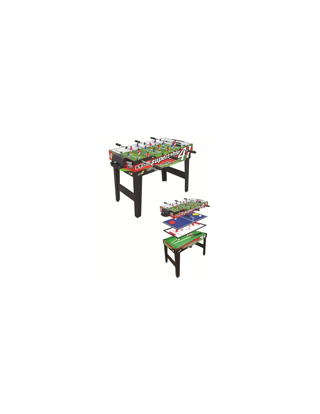Calcetto in MDF con aste telescopiche, segnapunti e palline; sistema di inclinazione del piano in posizione verticale salvaspazio.. Misura: 121 x 61 x 85 cm (da aperto) e 45 x 61 x 165 cm (da chiuso), è un prodotto della linea Sport One (1) per uso indoor.