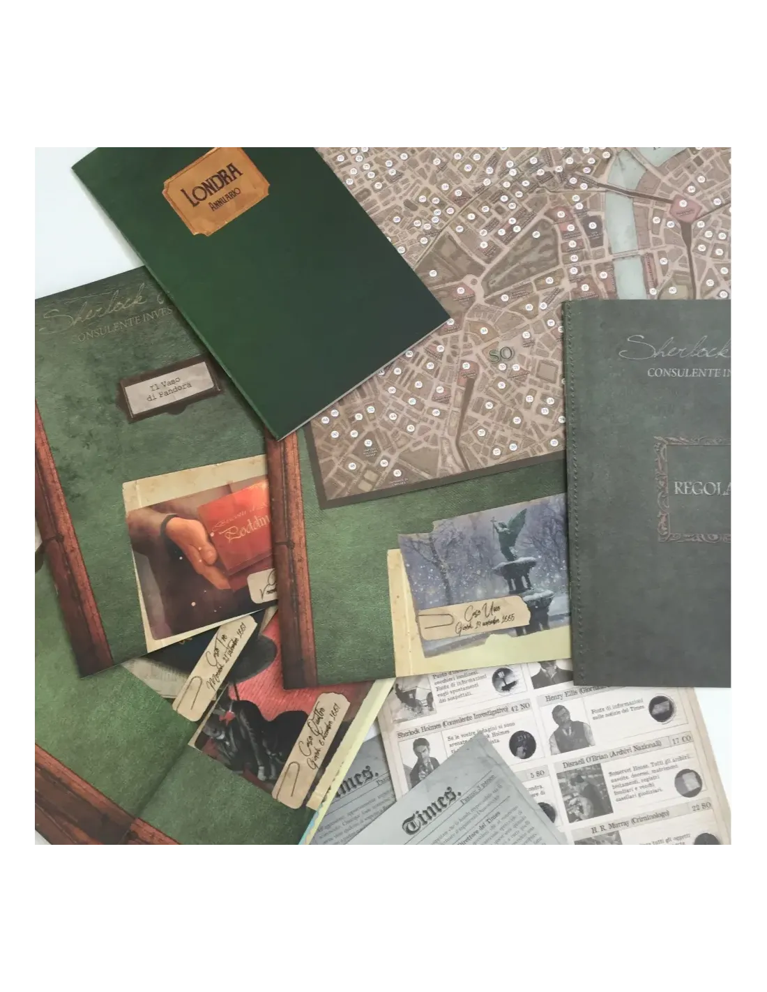 Sherlock Holmes Consulente Investigativo “Carlton House e Queen’s Park” vi farà immergere nei crimini e negli intrighi di Londra durante l’epoca Vittoriana; indagate con la vostra squadra ed usando i giornali, l’annuario e la mappa di Londra, risolvete i casi provando a superare l’investigatore più famoso. Questa scatola contiene 10 casi.. Carlton House:...