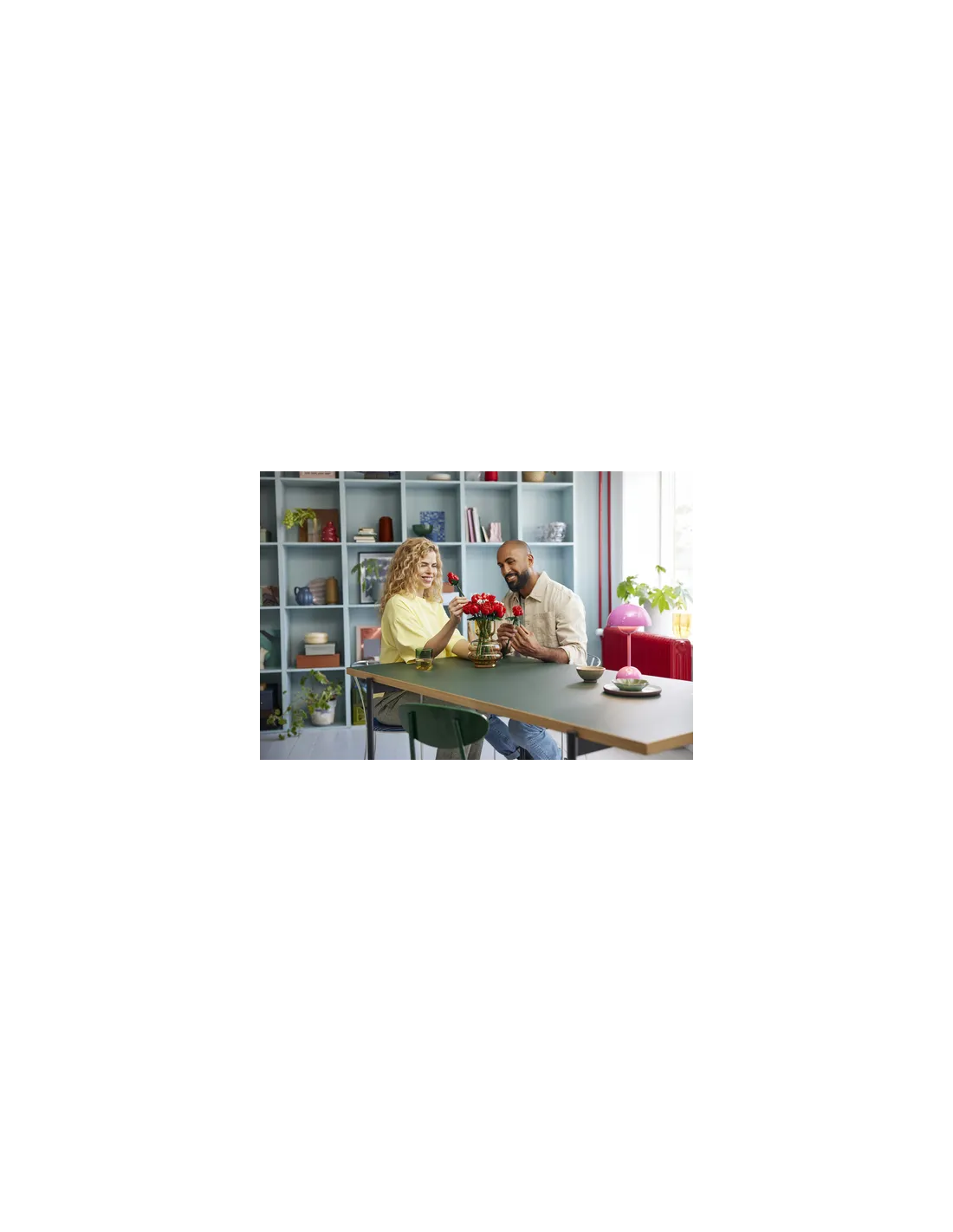 Un piacere da costruire, questo bouquet LEGO raffigura una dozzina di rose rosse, di cui 4 in piena fioritura, 4 in fiore e 4 in bocciolo, con lunghi steli verdi per l’esposizione in vaso, più 4 rametti di gipsofila con piccoli fiori bianchi. Facile da assemblare, il bouquet è un display elegante in qualsiasi spazio ed è combinabile con altri set della Collezione Botanica LEGO.