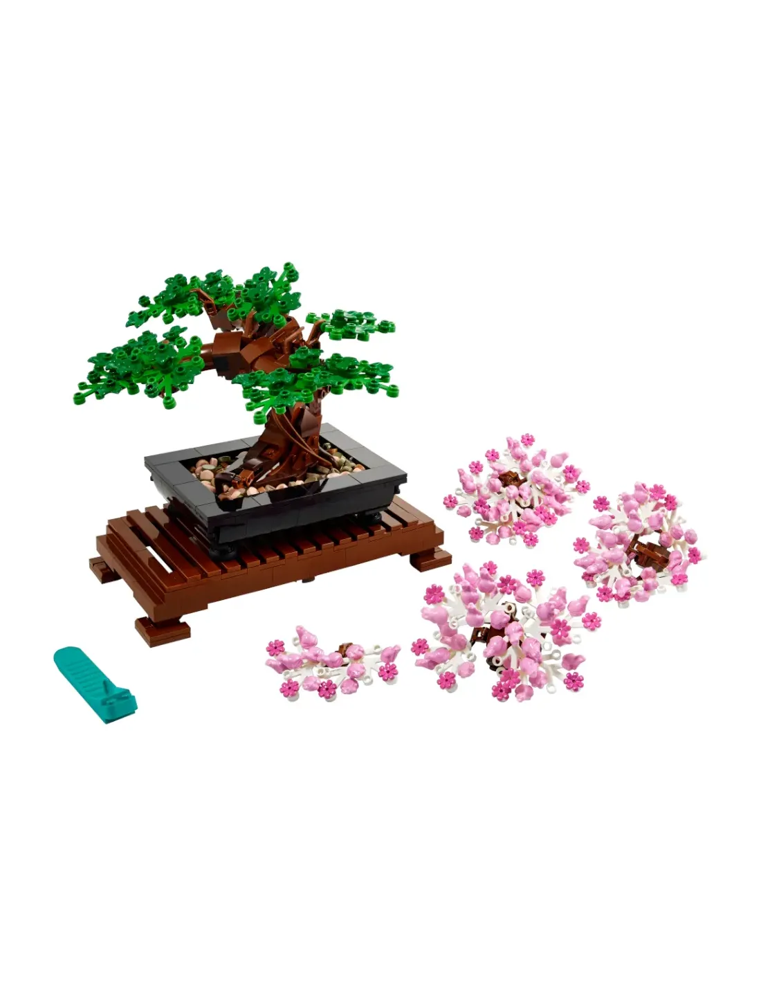 Include pezzi intercambiabili in modo da poter modellare l’albero bonsai con le classiche foglie verdi o i vivaci fiori di ciliegio rosa.