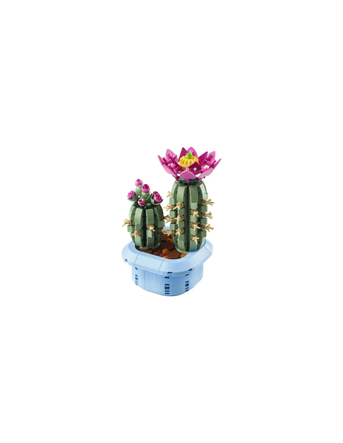 FIORI LEGO® ROSA: il cactus LEGO più grande presenta un fiore rosa con un centro giallo sulla parte superiore, mentre il cactus più piccolo presenta piccoli boccioli rosa