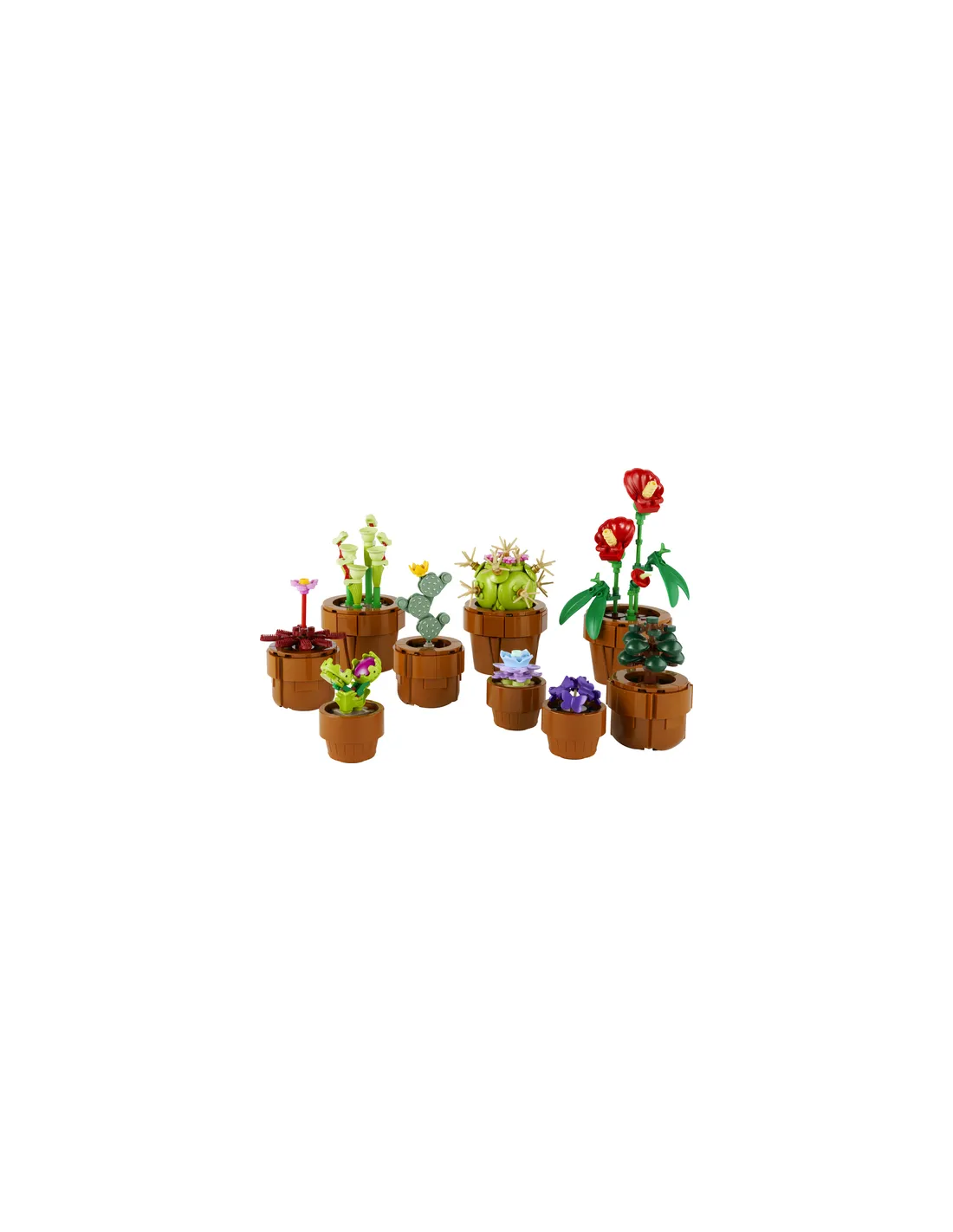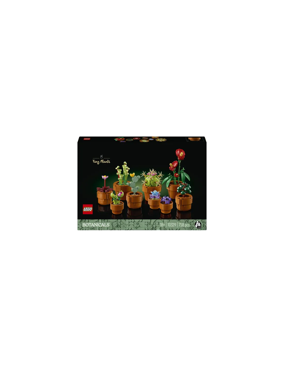 Crea un’elegante display floreale che non richiede manutenzione con questo set di home decor per adulti. Il progetto di costruzione Piantine LEGO® Botanicals (10329) presenta una flora basata su specie di zone aride, tropicali e carnivore, ciascuna in un vaso costruibile color terracotta. Dedicati a un progetto rilassante realizzando ciascuna delle 9 piante prima di esporle a casa o in ufficio.