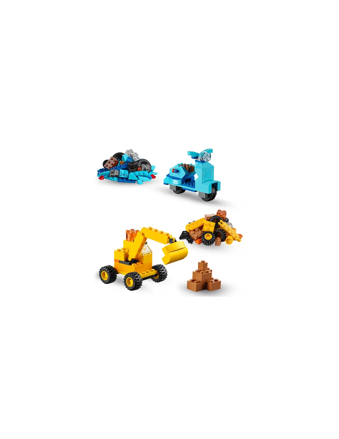 - Include tantissimi mattoncini LEGO® in 33 colori diversi, 8 tipi di finestre e di porte, con 8 telai diversi Gli elementi speciali includono 2 basi verdi di dimensioni diverse, 3 set di occhi, 6 pneumatici e 6 cerchioni