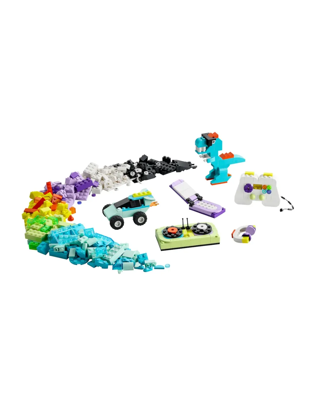 La scatola comprende 510 mattoncini colorati, ruote ed altri elementi speciali, che permettono di creare e combinare un’ampia varietà di giocattoli di tendenza e creazioni fantasiose; tanti mattoncini LEGO, oltre ad occhi, ruote e cerniere, massimizzano la giocabilità di questo versatile set. Le possibili costruzioni per bambini includono un controller di gioco, un dinosauro giocattolo con occhiali, un cellulare apribile e chiudibile, uno skateboard, un monster truck ed un kit da DJ con cuffie; i modelli possono essere combinati e personalizzati per un maggiore divertimento, ad esempio mettendo le cuffie al dinosauro ed il dinosauro sullo skateboard giocattolo. Una divertente idea regalo di compleanno per i fan della costruzione creativa, con cui dar vita a personaggi LEGO ed animali..