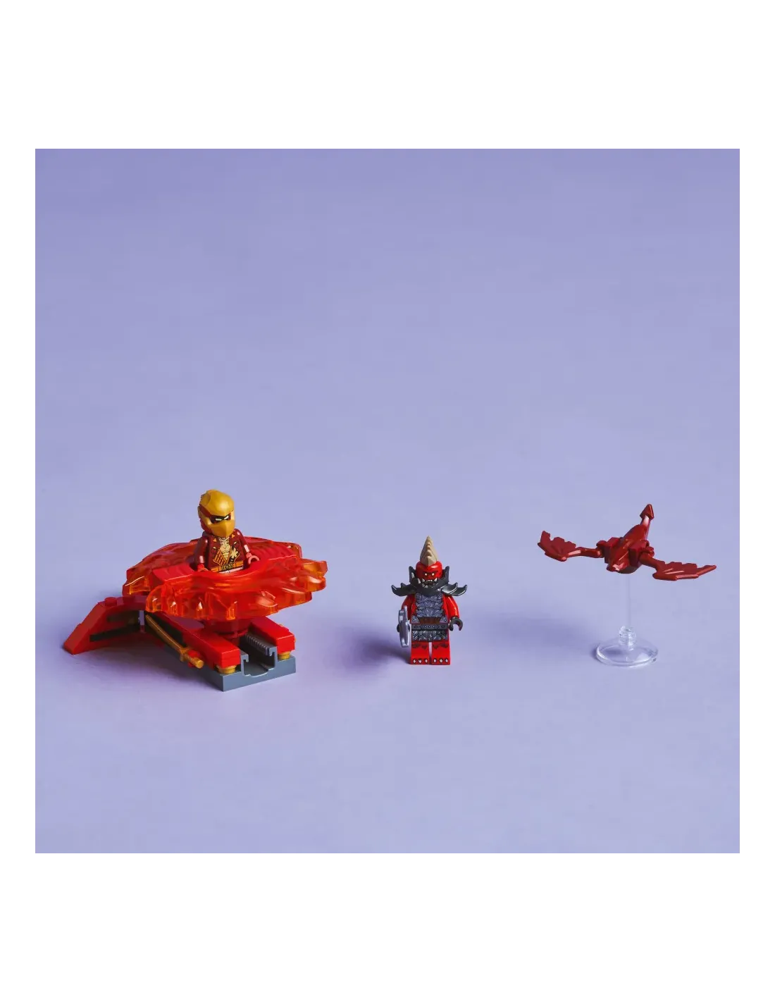 Armi accessorie: ogni minifigure dei personaggi NINJAGO® è dotata di un’arma per un tanto valore di gioco in più: Kai è dotato di una spada accessoria e lo Scout dragoniano ha un’ascia accessoria