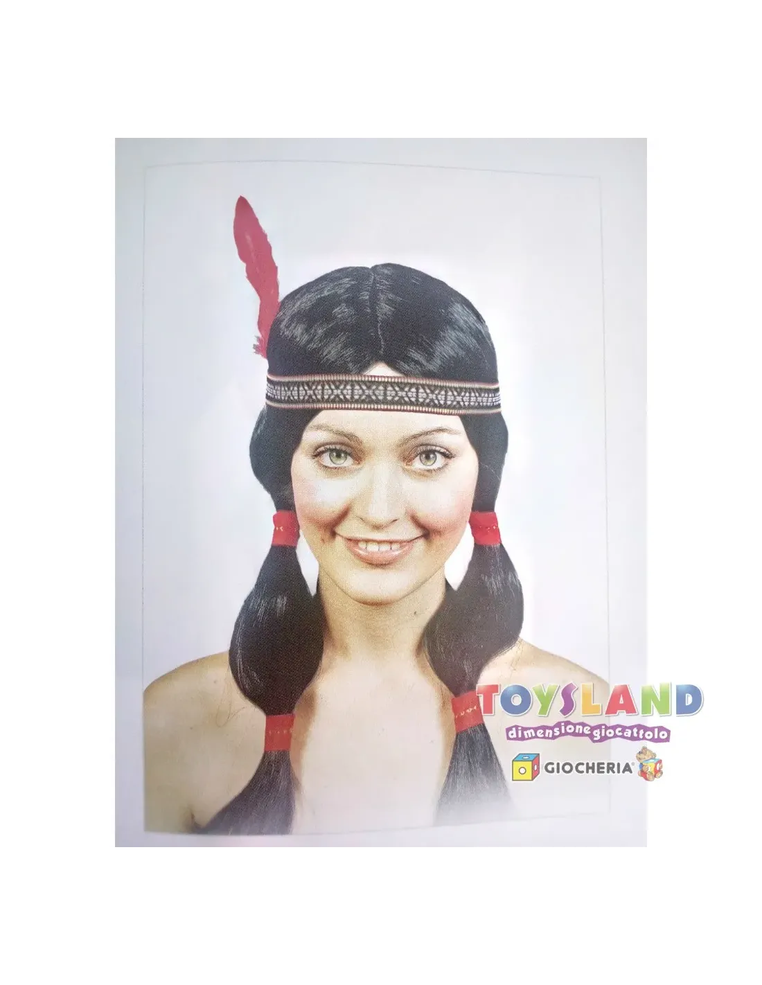Piuma rossa puntata nei neri capelli di questa parrucca che aderirà alla tua testa anche grazie alla fascetta che poggerà sulla tua fronte, i lunghi capelli neri sono legati da più fascette rosse. I capelli sono rigorosamente suddivisi a metà da una riga centrale sulla testa: come una vera indiana! Ideale per molteplici occasioni: carnevale, party, feste a tema, serate, spettacoli, saggi e recite.