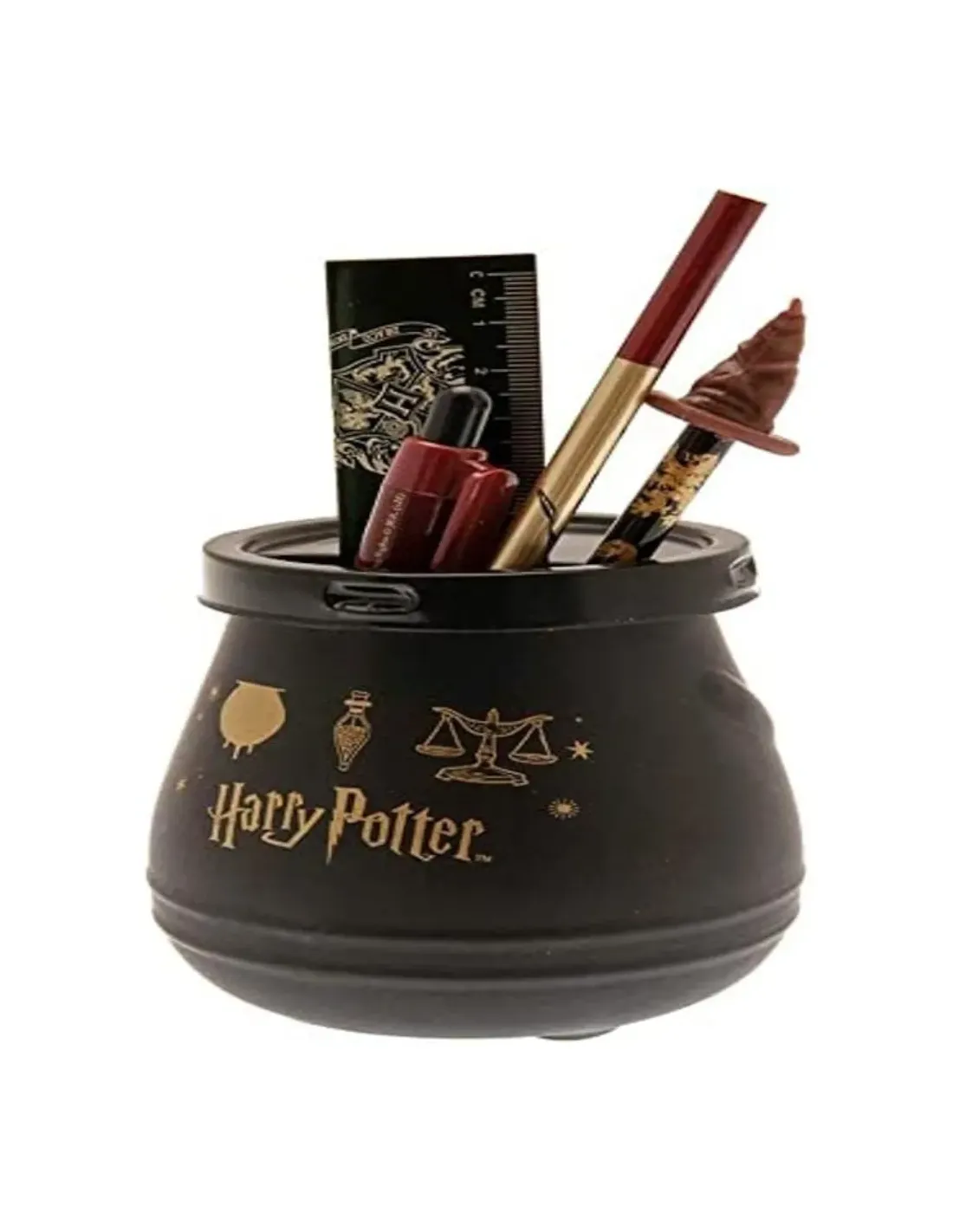 Portapenne e Matite Harry Potter Calderone magico con set cancelleria. Contenuto Portamatite Calderone magico: Matita in Grafite, Penna a sfera, Righello, Penna Roller Cappello Parlante.