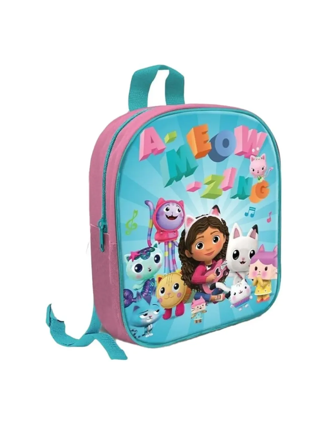 Zaino che raffigura gli iconici personaggi di Gabby's Dollhouse, la famosa serie TV.