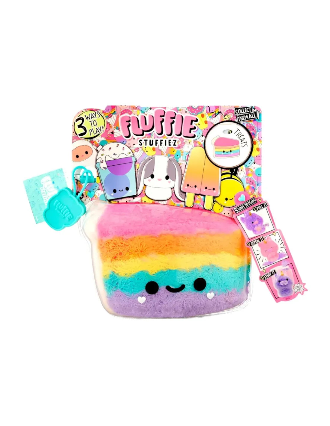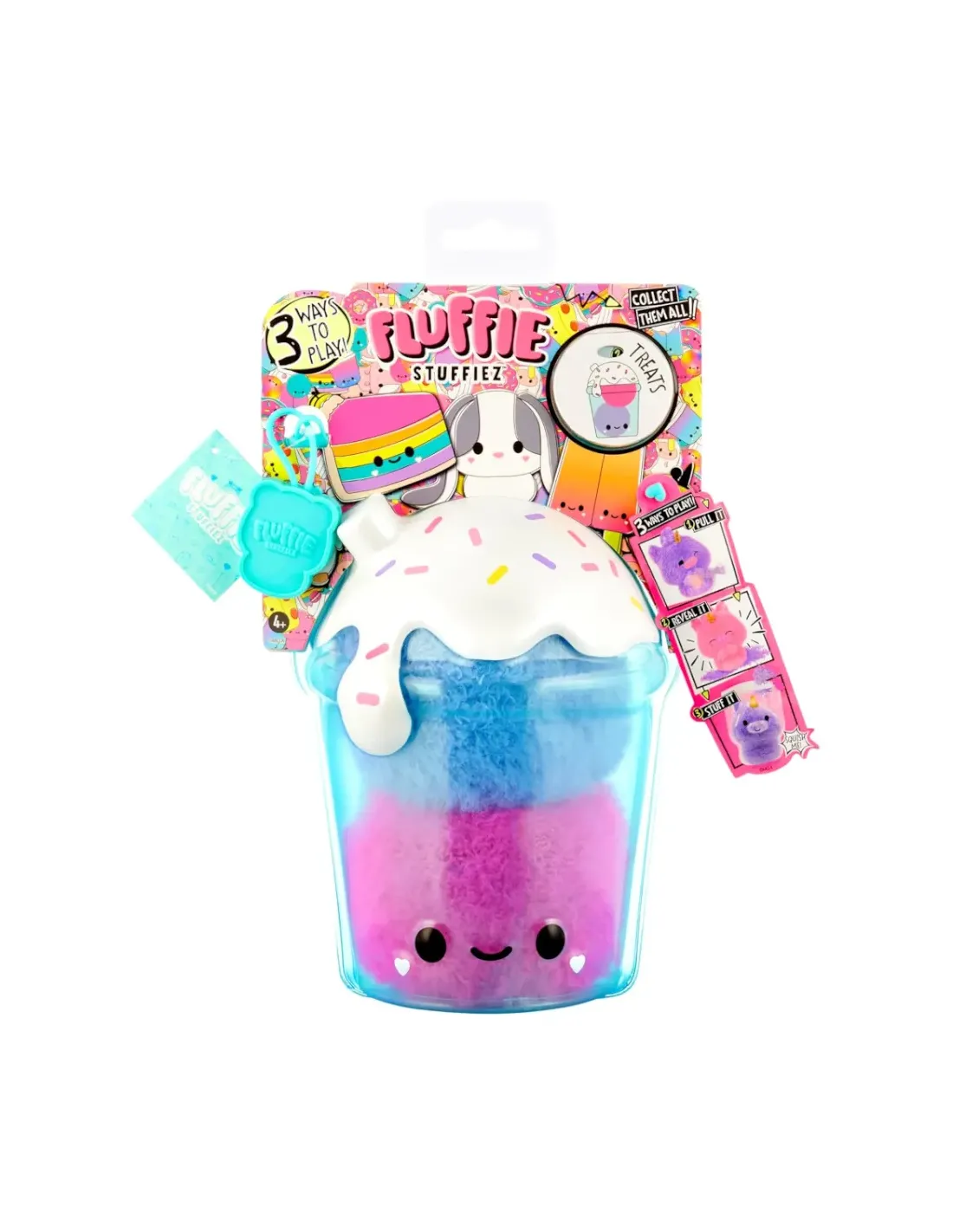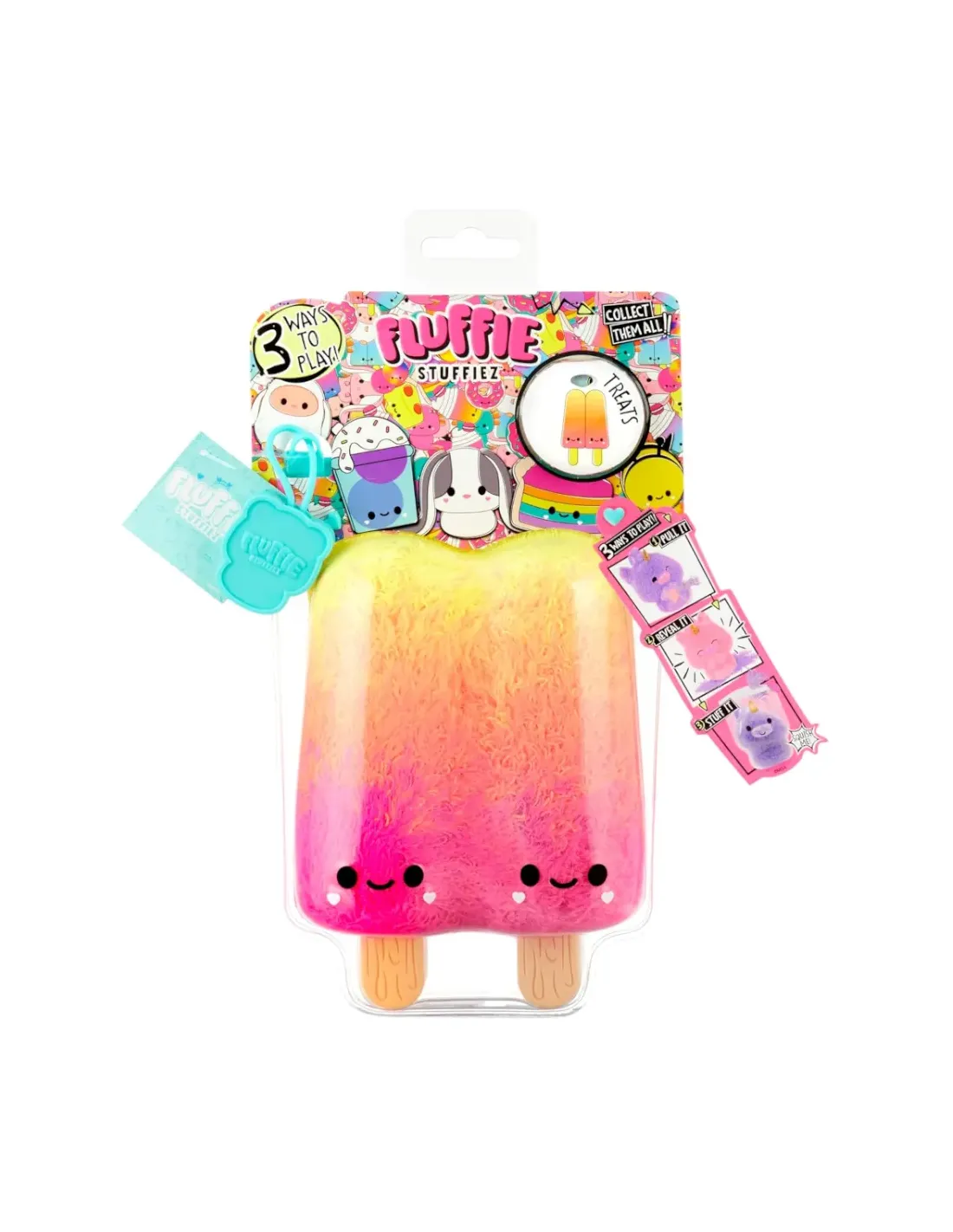 Ecco i Fluffie Stuffiez: questi personaggi sono super coccolosi, ultra soffici e ricchi di personalità.. Puoi giocare in tre modi diversi: tira, scopri e riempi; sotto c'è un personaggio Ice Cream a sorpresa! Quale scoprirai? Togli la pelliccia per rivelare un simpaticissimo amico. Togli lo strato esterno di peluche del tuo Fluffie Stuffiez per rivelare...