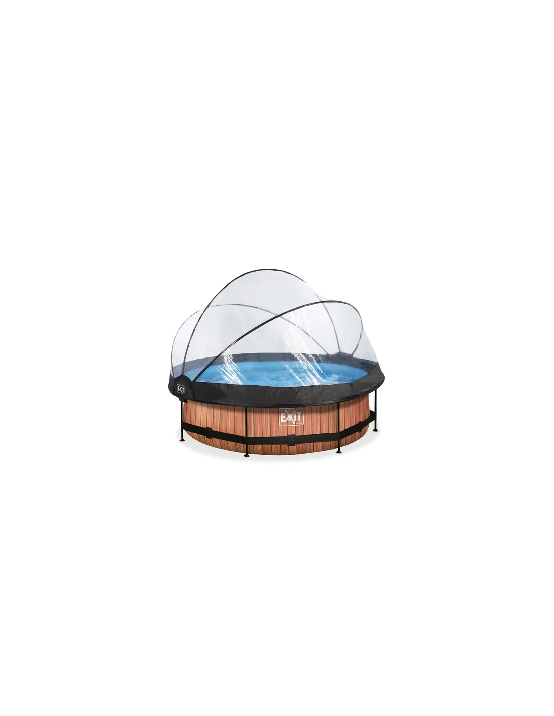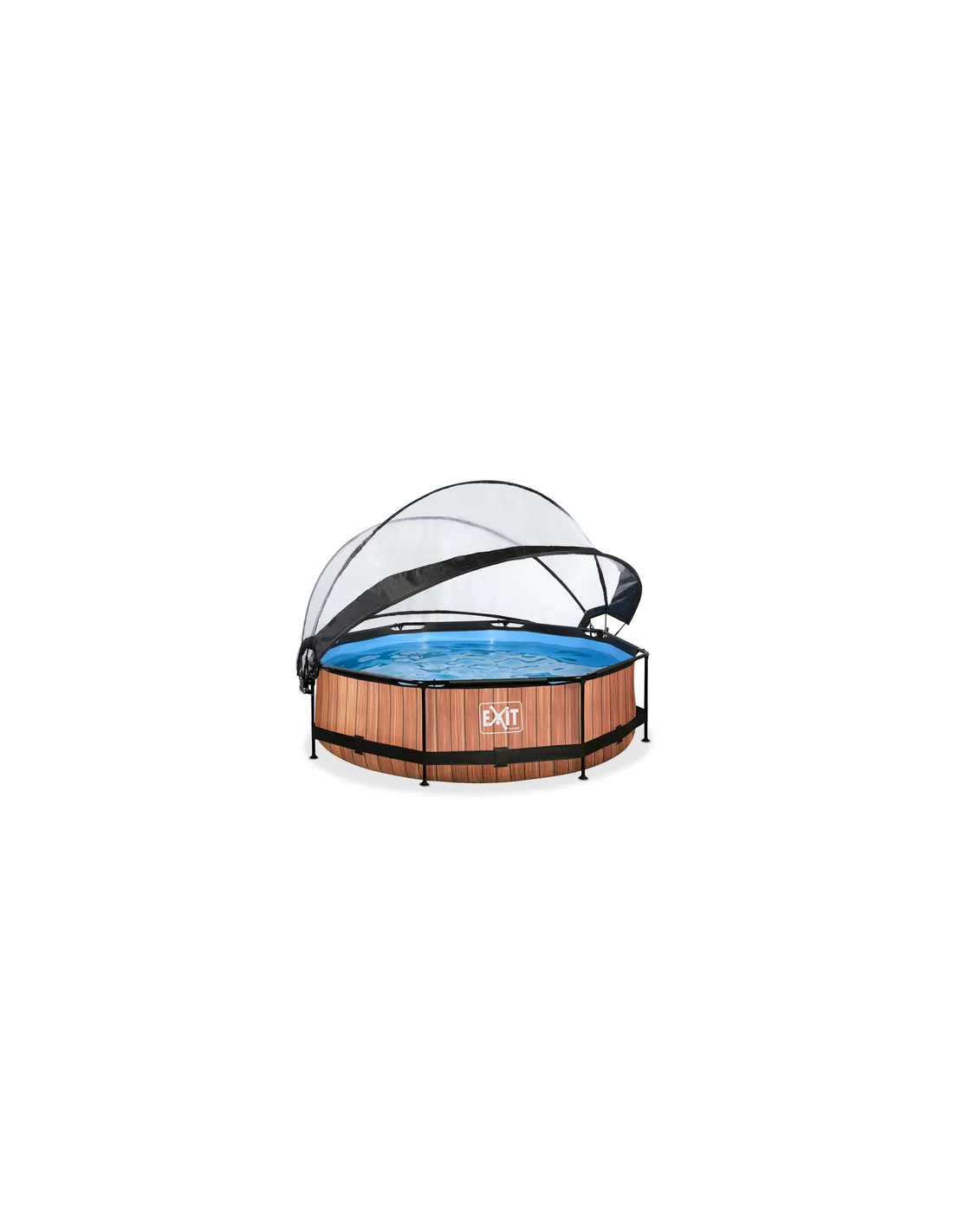 EXIT Wood pool ø300x76cm with dome and filter pump - brown Piscina con bordi Piscina rotonda 4383 L Marrone