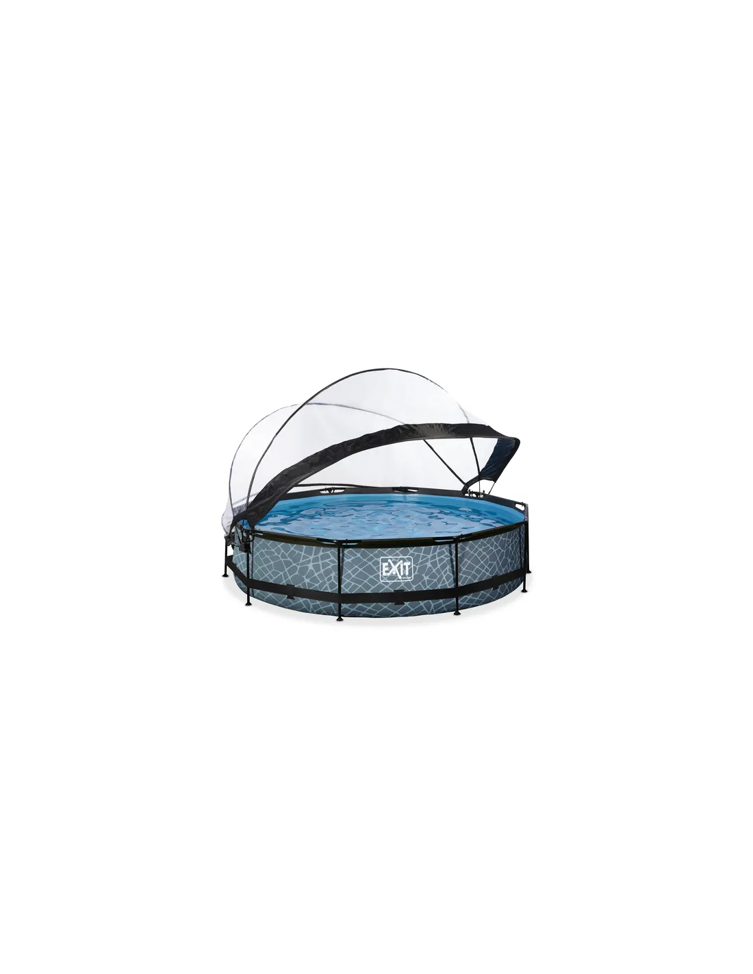 EXIT Stone pool ø360x76cm with dome and filter pump - grey Piscina con bordi Piscina rotonda 6125 L Grigio