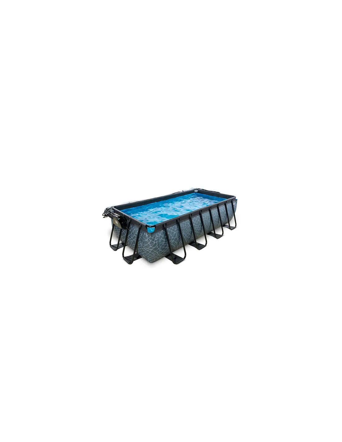 EXIT Piscina "Stone" 400x200x100cm con filtro a sabbia, cupola e pompa riscaldamento acqua - Grigia