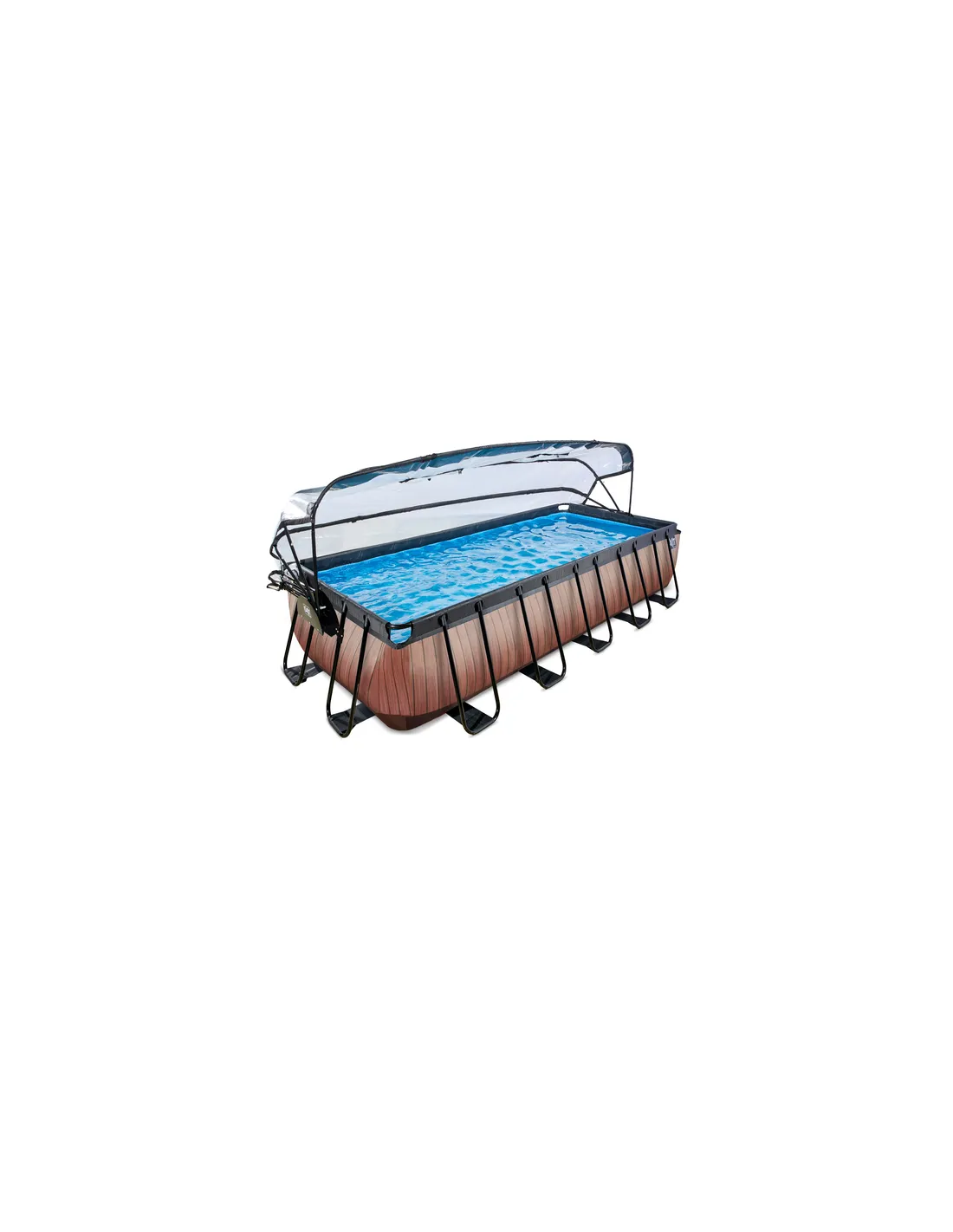 EXIT Piscina "Wood" 540x250x100 cm con filtro a sabbia, cupola e pompa riscaldamento acqua - Marrone