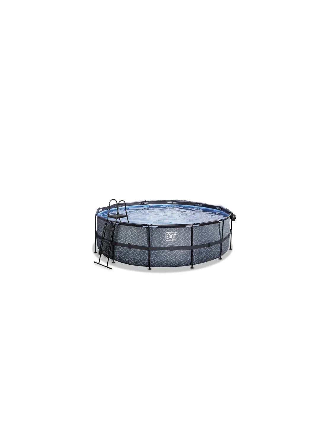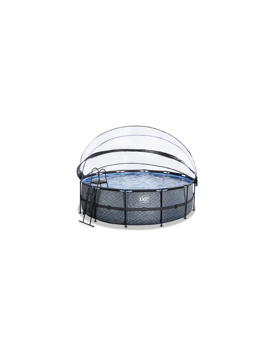EEXIT Piscina "Stone" ø450x122cm con filtro a sabbia, cupola e pompa riscaldamento acqua - Grigia
