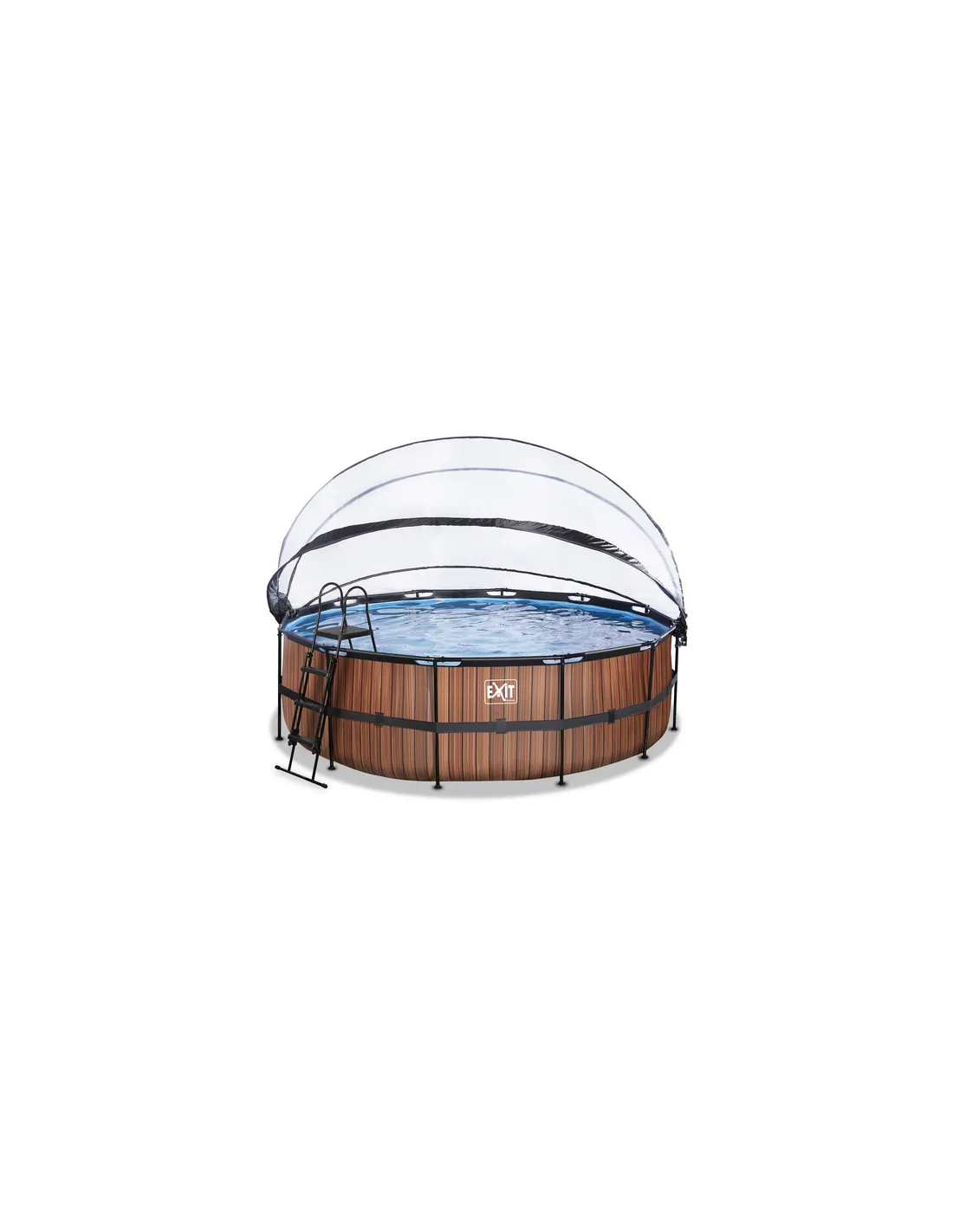 EXIT Piscina "Wood" ø450x122cm con filtro a sabbia, cupola e pompa riscaldamento acqua - Marrone