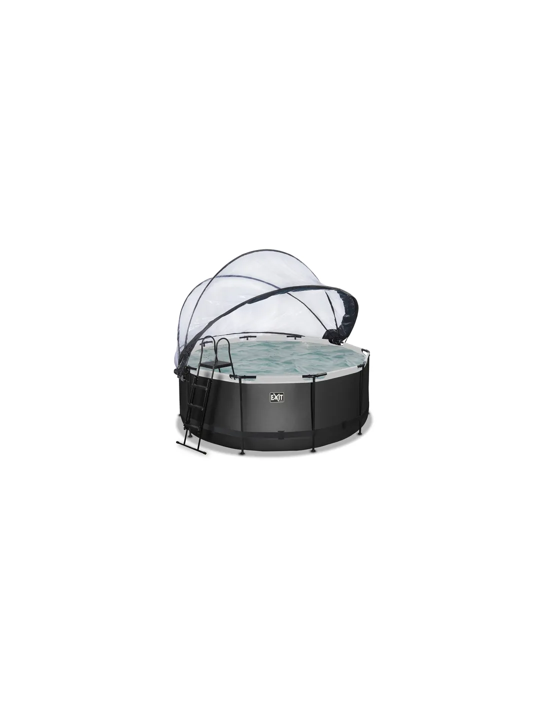 EXIT Piscina "Black Leather" ø360x122cm con filtro a sabbia e cupola protettiva - Nera