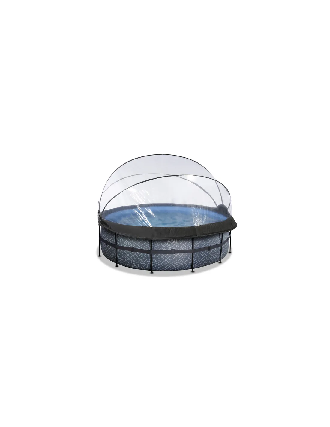 EXIT Piscina "Stone" ø427x122 cm con filtro a sabbia e cupola protettiva - Grigia