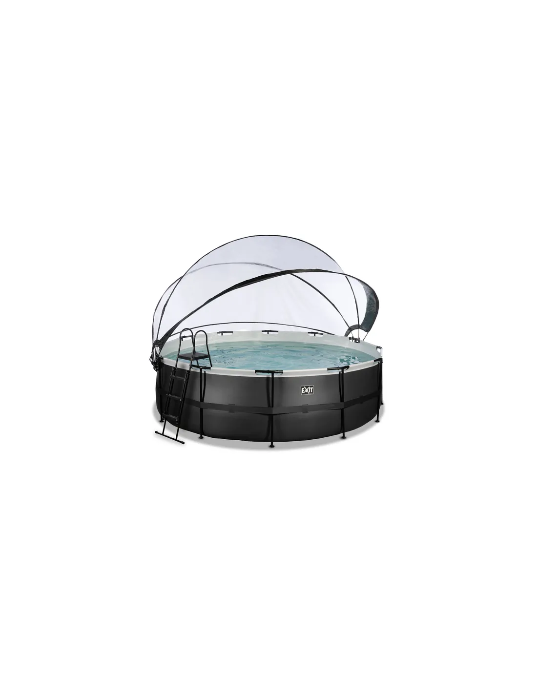 EXIT Piscina "Black Leather" ø450x122 cm con filtro a sabbia e cupola protettiva - Nera
